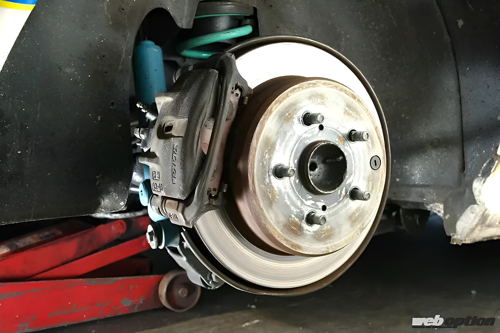 元々4リンクのリヤサスペンションは、初代エスティマのホーシングを流用してキャパシティアップ。同時にインドラム式のディスクブレーキ化することで、ドリフトのコントロール性も向上させた。