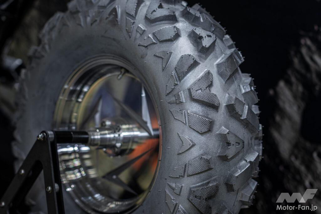 • 前後2輪駆動(2WD):砂地に足を取られないよう、前後のホイール内にモーターを内蔵。片方の車輪が空転しても、もう一方が確実に路面を捉える設計だ。