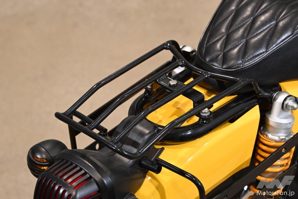 カスタムロングシートに形状的にもピッタリなのがラウンドタイプのリヤキャリア(52809円)。ストレートタイプも同価格でチョイス可。
