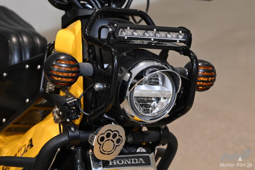 フロント周りには多彩なパーツが取り揃えられている。ガーニッシュウインカーは2個セット(1650円)と前後用の4個セット(2420円)があり、ブラックとメッキが選べる。ステンレスホーンカバー(1980円)はモンキー125やダックス125にも装着できるアイテムだ。