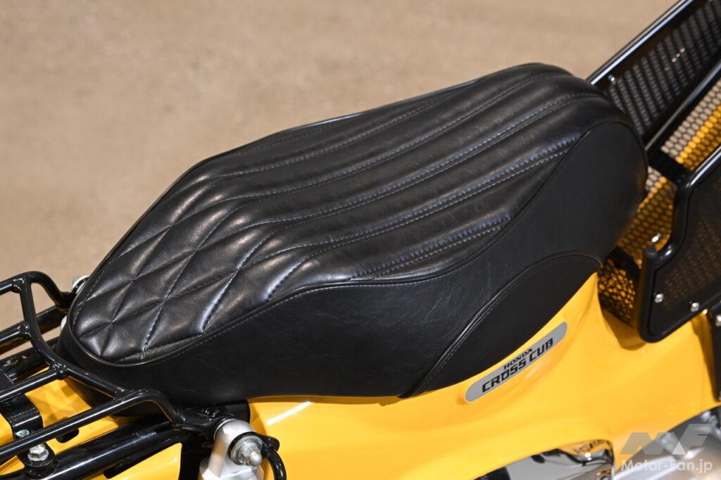 クロスカブに似合う雰囲気を持つロングシート(1万4080円)。カラーはブラウン、ダークブラウン、ブラックの3色から選べる。