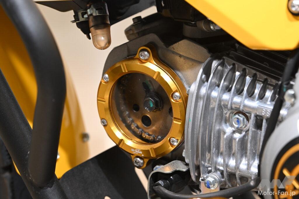 汎用となるシリンダーヘッドサイドカバー(4180円)は強化プラスチックと削り出しのアルミで構成されており、アルミ部分は写真のゴールドのほか、ブラック、レッド、シルバーも選択可能。