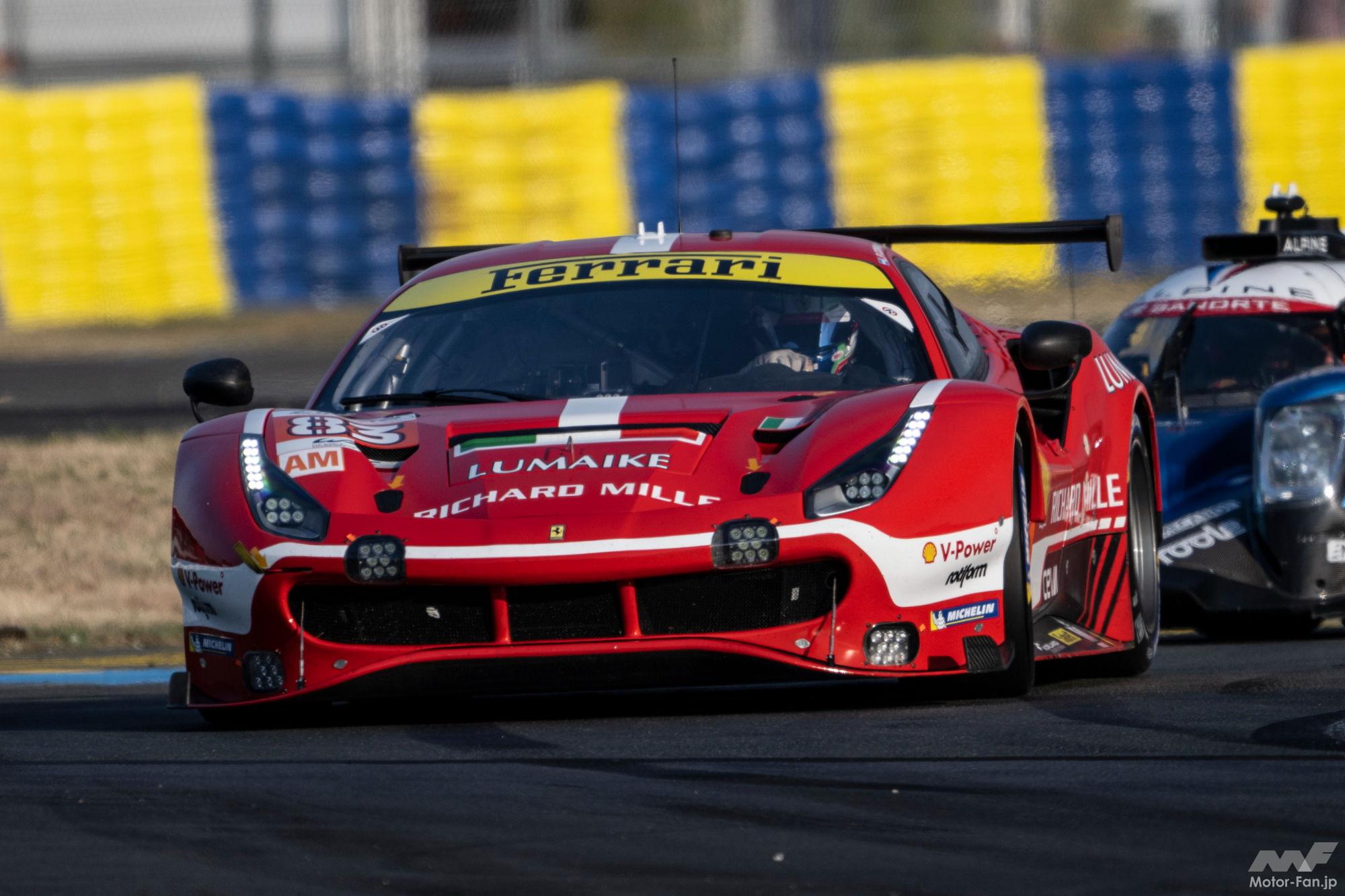 フェラーリは488 GTEを2015年に発売して以降、同モデルを熟成。絶対的な速さに関係するエアロダイナミクスはもちろん、耐久レース向け車両としてのキモとなる信頼性向上を狙ったアップデートも重ねられてきた。エンジンは3.9L V8ツインターボ。昨年のル・マンのGTE Amクラスではこの488 GTE EVOを走らせたチームが優勝を飾っている。