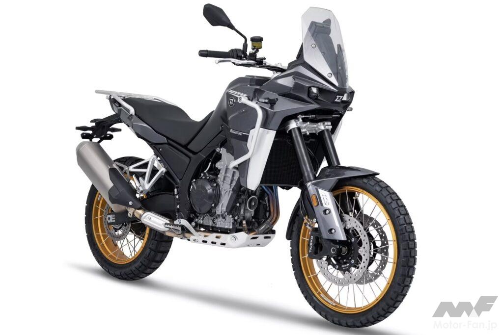 2025年から日本導入を開始したKOVEのアドベンチャーマシン。仕様の違いによって800X RALLY、800X TOURING、800X PROの3種類を展開する。基本設計を共有し、最高出力95psの799cc水冷4ストローク並列2気筒DOHCエンジン(同社では「オリジナル」を謳うが、CF-MOTOとKTMの合弁で開発されたエンジンブロックに独自に開発したヘッドを載せたものらしい)を搭載するが、キャラクターはそれぞれのモデルで作り分けられている。今回展示されていたのは800X RALLYと800X TOURINGの2車種だった。