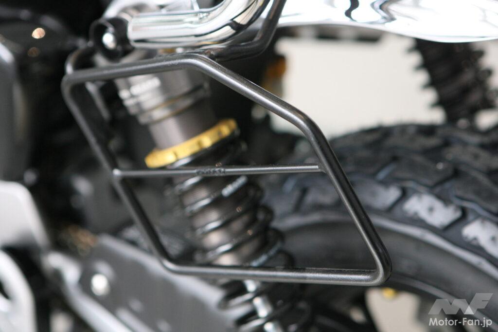 サイドバッグサポート(7920円)は車体左側にバッグを装着するのにとても便利。ただし、キタコ製のリアキャリアーかグラブバーを装着していることが取り付けの前提となる。