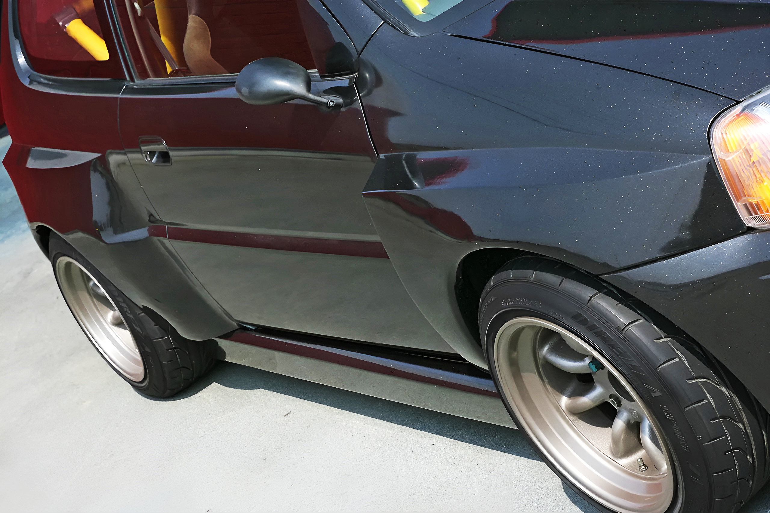 ワンオフブリスターフェンダーにより、全幅は1645mm→約1800mmに拡大。エンジン換装、定員変更などとともに公認申請され、3ナンバーを取得している。