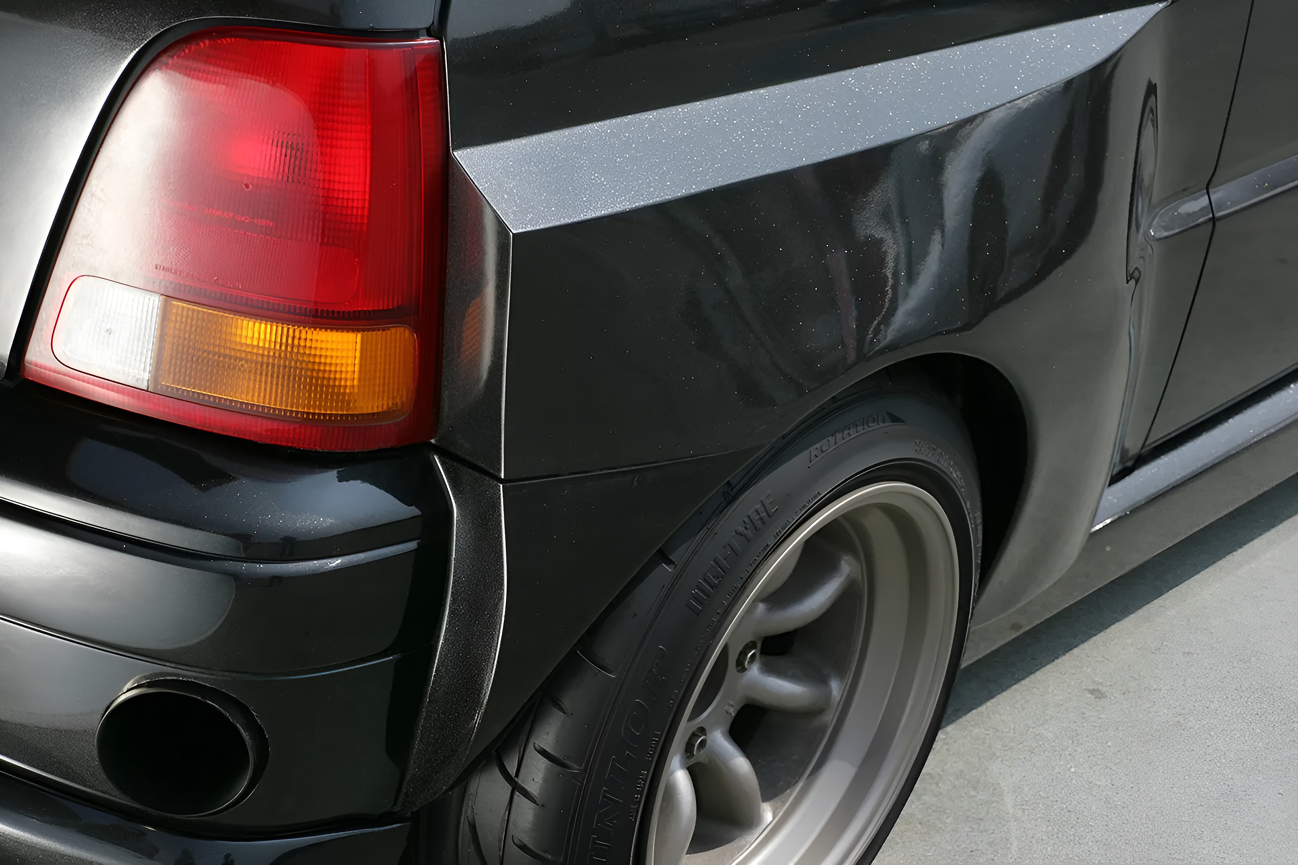 ワンオフブリスターフェンダーにより、全幅は1645mm→約1800mmに拡大。エンジン換装、定員変更などとともに公認申請され、3ナンバーを取得している。