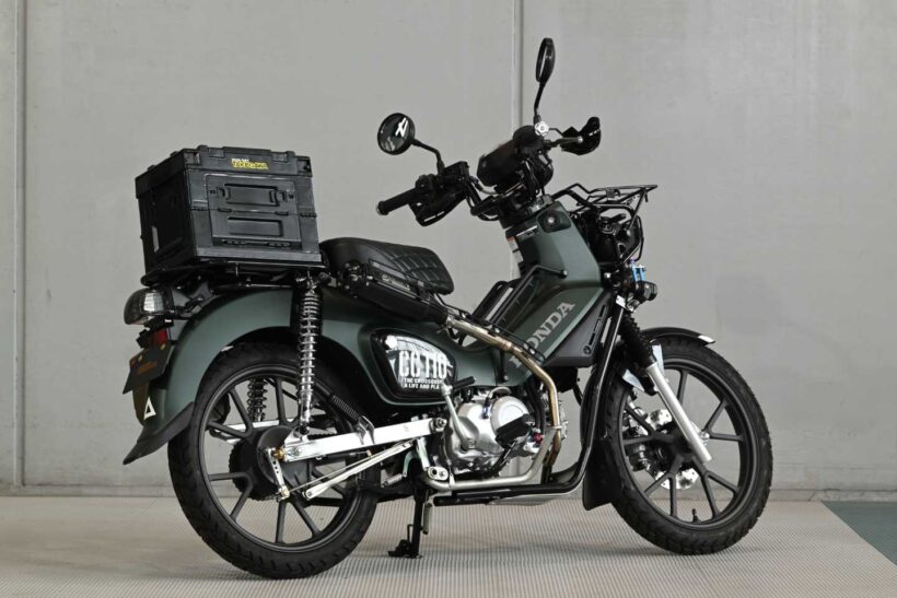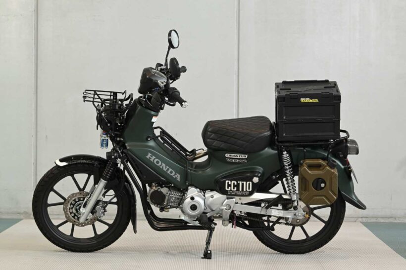 バイクカスタム スペシャルパーツ武川のクロスカブ110がちょうどいい!145ccボアアップ×ハイドロクラッチで“日常が楽しくなる”ライトチューン【モーターサイクルショー2026】【写真・8枚目】 145ccボアアップを軸に、実用性と遊び心を両立したスペシャルパーツ武川のクロスカブ110。ライトチューンの完成形とも言える1台だ。 アップマフラーとキャリア装備が際立つ左サイド。クロスカブらしいギア感と、走りの余裕を感じさせるバランスが秀逸。 右サイドはエンジン周りの作り込みが際立つ。145cc化に加え吸排気と燃調まで整えた、完成度の高いライトチューン仕様だ。 アップタイプのトラッカーマフラーを装着。ショート形状のサイレンサーと取り回しで軽快なスタイルを演出しつつ、排気効率にも配慮した設計が特徴。政府認証モデル(※ノーマルエンジン時)として実用性も確保されており、145cc仕様との組み合わせで見た目と走りの両立を図っている。 ハイパーSステージボアアップキット145ccを核に、ビッグスロットル&FIコンを組み合わせた本格仕様。扱いやすさも重視している。 ウォータータンクキットを装着し、ツーリング装備も充実。クロスカブらしい“道具感”を高めるアクセントになっている。 スモークテールレンズに加え、コンパクトなオーバルミニLEDウインカーを装着。視認性を確保しつつサイズを抑えることで、リア周りをスッキリと引き締めている。細かな電装系のアップデートだが、全体の完成度を底上げする重要なポイントだ。 ウォータータンクキットを装着し、ツーリング装備も充実。クロスカブらしい“道具感”を高めるアクセントになっている。 ハンドル周りにはハンドルガードを装着。Φ22.2mmパイプを採用しているため、クランプ式のモバイルホルダー類が取り付けしやすいのが特徴だ。 キャリアコンテナセット20Lを装着。積載性をしっかり確保し、日常使いからツーリングまで対応する実用装備。 フロントキャリアは積載だけでなくスタイルにも貢献。ヘッドライトガードとの組み合わせで無骨な印象を強調する。 この画像の記事を読む