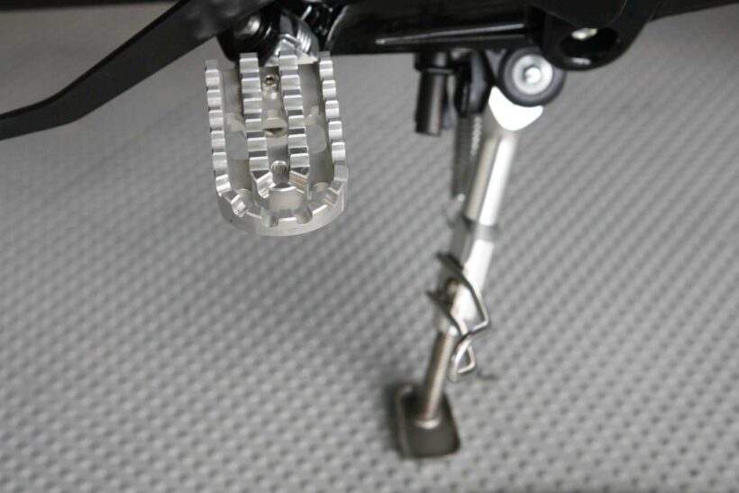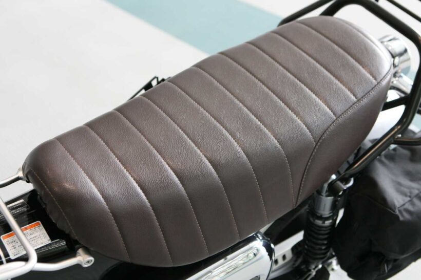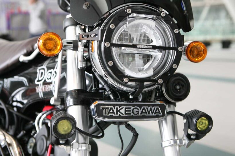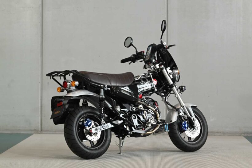 バイクイベント SP武川がダックス125を“操るバイク”へ進化させた!注目はハイドロクラッチ&145cc化【モーターサイクルショー2026】【写真・5枚目】 SP武川がダックス125を本気で料理。ハイドロクラッチ、145cc化、前後ブルーの2ポットキャリパーまで投入し、“見た目はダックス、中身は別モノ”を体現した1台だ。 ブラウンのクッションシートカバーは、タックロール仕上げでクラシカルなムードを演出。カスタム全体の雰囲気をやわらかくまとめる、見た目の要となるパーツだ。 車体全体のバランスがよく分かるサイドビュー。ブラウンのクッションシートカバー、前後ディスクまわり、エンジン周辺の機能パーツが組み合わされ、ダックスらしさを残したまま密度感を高めている。 左サイドから見ると、エンジン周辺の作り込みがより明確。コンパクトクールキットやシリンダーヘッドサイドカバー、タペットカバーセットなどが効いており、“中身まで手が入った1台”であることが伝わってくる。 フロント足周りの主役は、ブルーのアルミビレット2ポットキャリパーとフロントフローティングディスクローター。見た目の華やかさだけでなく、制動力アップをしっかり意識した組み合わせだ。 リアにもブルーのアルミビレット2ポットキャリパーを装着。ウェーブ形状のリアディスクローターとの組み合わせで、足周りの統一感と前後バランスのよさが際立つ。 存在感の大きいトラッカーマフラー(スリップオン)。アップタイプのレイアウトでダックスらしいスタイルを崩さず、音質と軽量化の両面で効果を発揮する。 エンジン周辺には145cc化の核となるSステージαボアアップキットに加え、シリンダーヘッドサイドカバーやタペットカバーセットなどを装着。武川らしい“見せるエンジン周り”に仕上がっている。 正面寄りから見たコンパクトクールキット。ブルーのステーがアクセントになっており、冷却パーツでありながらドレスアップ効果もしっかり高い。 左手側にはハイドロクラッチコンバージョンキットを装着。クラッチマスターシリンダーと可倒式アルミビレットレバー、レッドのマスターシリンダーガードが、“操るダックス”を強く印象付ける。 コクピットの主役はスーパーマルチTFTメーター。純正とは一気に印象が変わる先進的な表情で、ハンドル周りのビレットパーツやステムナットの質感も引き立てている。 丸型ヘッドライトを中心に、ブレイズウインカーとレモンイエローのLEDフォグランプを組み合わせたフロントマスク。ダックスらしい親しみやすさに、武装感をひとさじ加えた表情だ。 足元にはビレットワイドステップキットを装着。高さ調整ができるアジャスタブルサイドスタンドも人気アイテム。 この画像の記事を読む