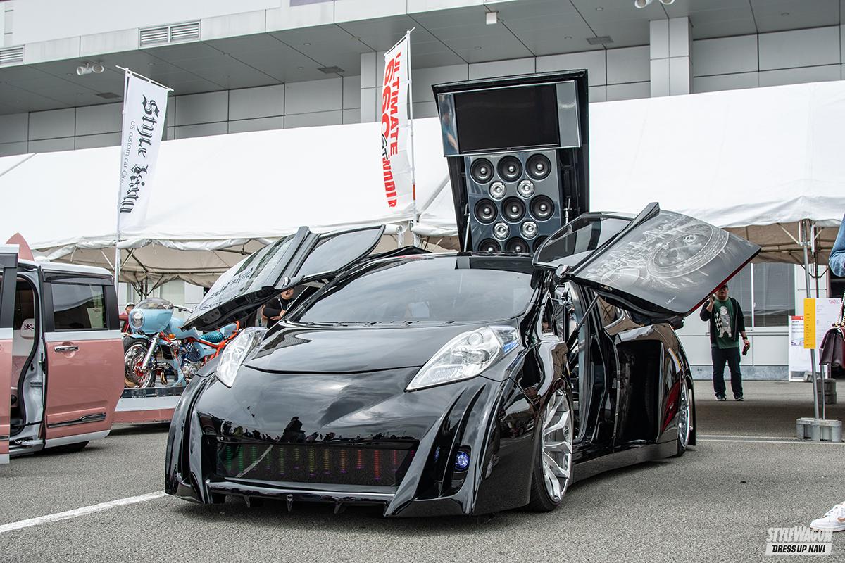 度肝を抜く内外装フルカスタムのモンスターリーフを筆頭に、日本自動車大学校(NATS)のエスクードなど、サロンを賑わせた話題車も富士にやってきた!