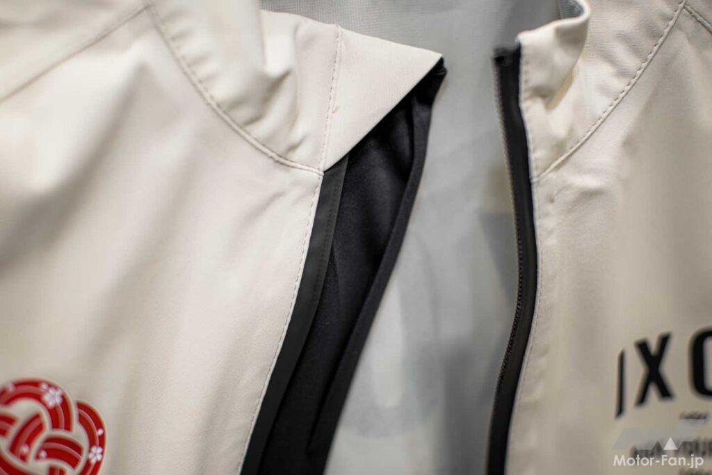 当日発表された中上貴晶コラボレーションモデルは、軽さとストレッチ性を重視し、防水構造を備えた実用的な一着。プロテクターはあえて非装備とし、日常でも着やすい仕様となっている。
