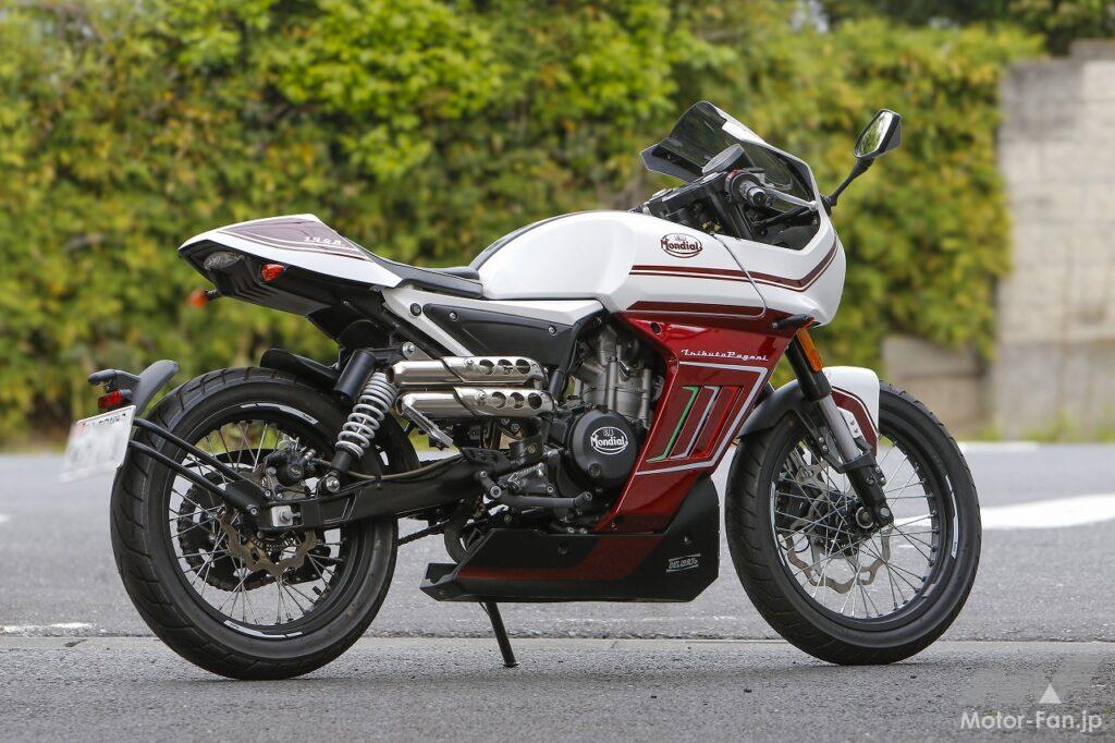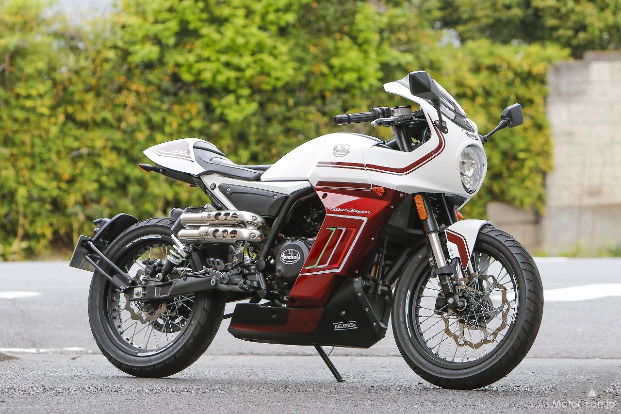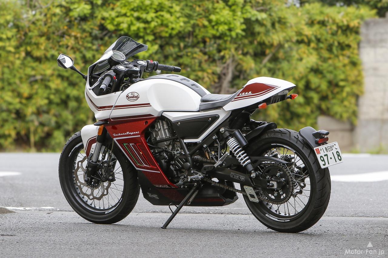 そんなパガーニ300ですが、ヘッドライトはハロゲンタイプとしているし、ホイールもワイヤースポーク式です。しかし単に懐古趣味に走っているわけじゃありません。リアにはインナーフェンダーとスイングアームマウントのナンバープレートホルダーを装備。丸型の単眼メーターも液晶のフルデジタルを採用しています。このように往年のカフェレーサーを彷彿とさせながらも、現代技術を随所に導入して、今日的なスポーツモデルへと仕上げているのです。
