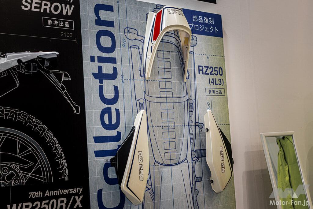 今年のヤマハブースで、往年のファンを最も驚かせたのは新型車ではない。1980年の発売から40年以上が経過した名車「RZ250(4L3)」の、サイドカバーおよびテールカウルの新規開発・復刻の発表である。