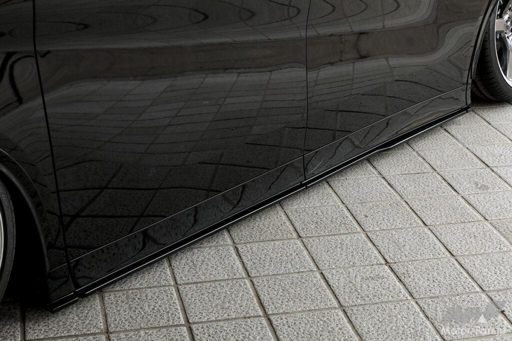 そんなベースエアロを際立たせる、サブパーツの潤沢さも見所といえる。それはバンパーの存在感だけでなく、ロワード感を強調する術となるディフューザーと呼ぶフラップスポイラーであり、ワイド感とロワード感を同時に得られるオーバーフェンダーであり、バンパーに負けない凹凸で違いを追求したボンネットでありと、様々。1パーツに複数の選択肢を用意している点も特徴で、リアディフューザーではマフラーの有無で、サイドは一体か分割かが選べるなど、自分の理想にあった組み合わせを楽しめる。