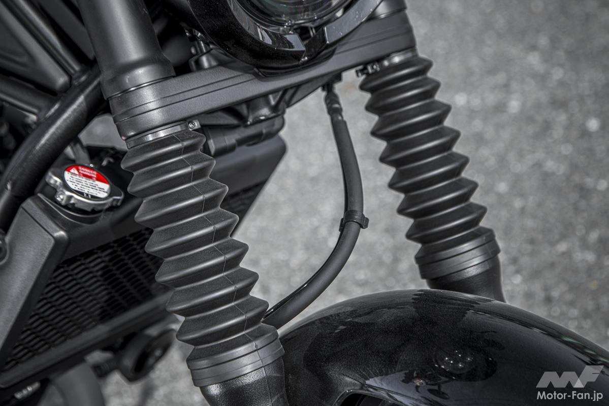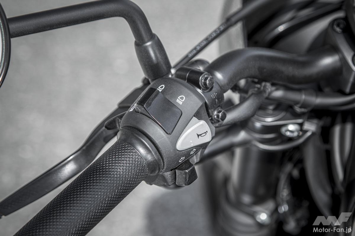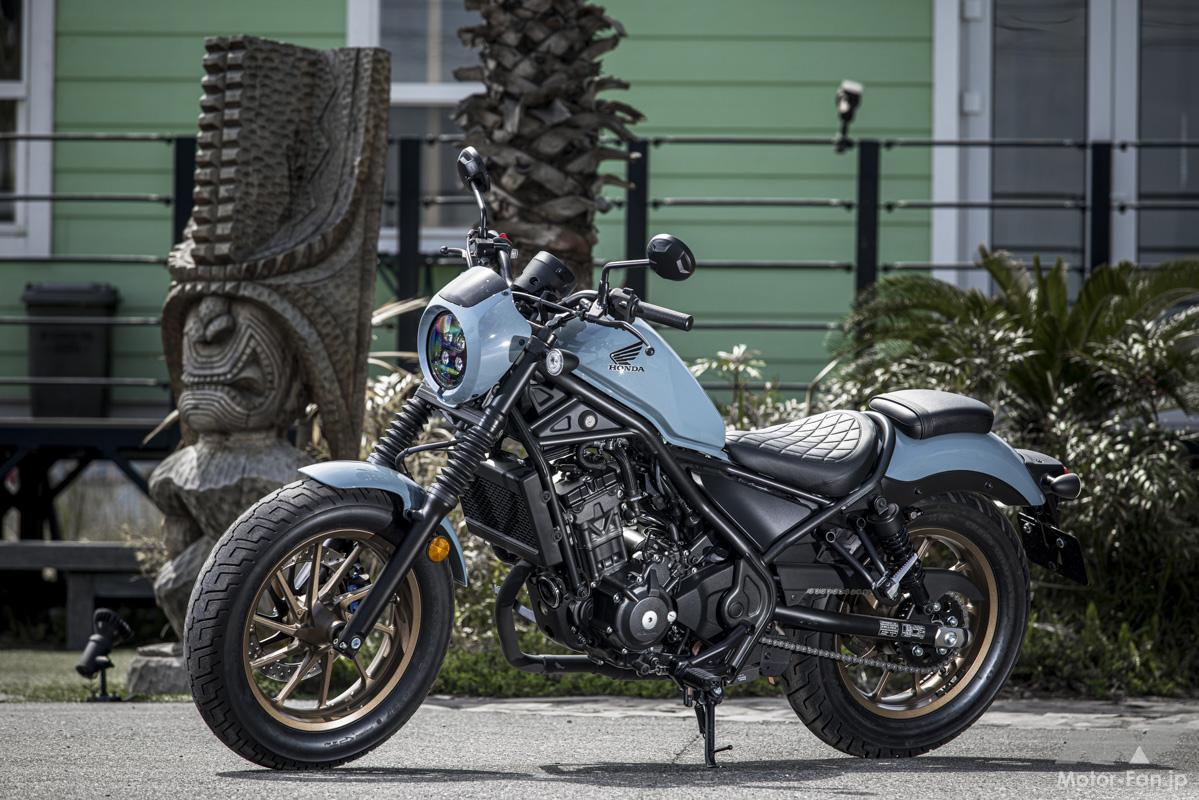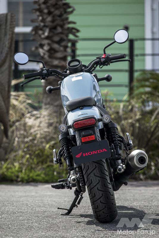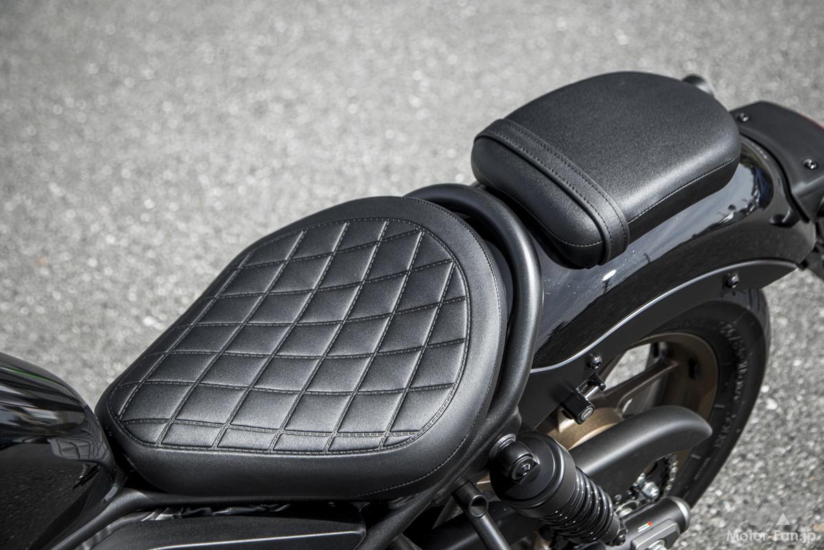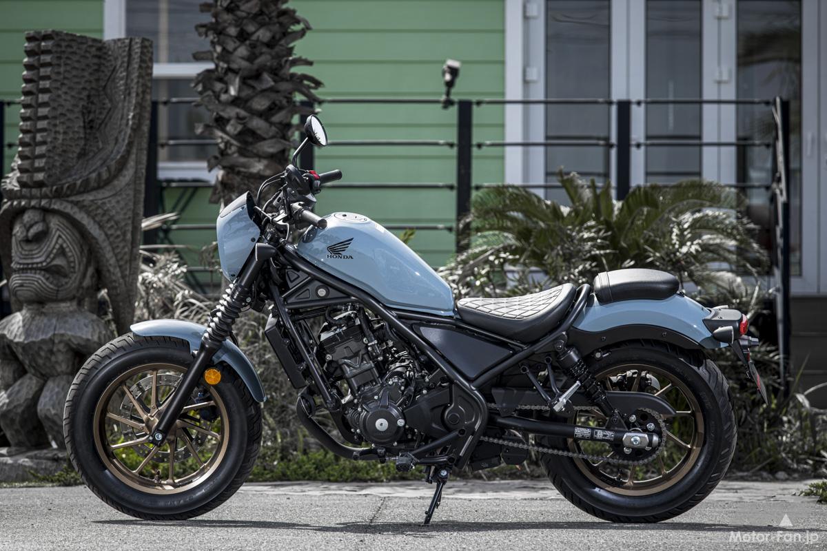 メーターにはE-Clutchの作動を表示するライトとシフトダウンインジケーターが追加され、リアフェンダーが樹脂製となった。オプションではグリップヒーター、ETC、スポンジが10mm厚くなって快適性が向上したリアのコンフォタブルシートなども用意されるなど、Rebel 250らしさを大事にしつつアップデートされているのである。