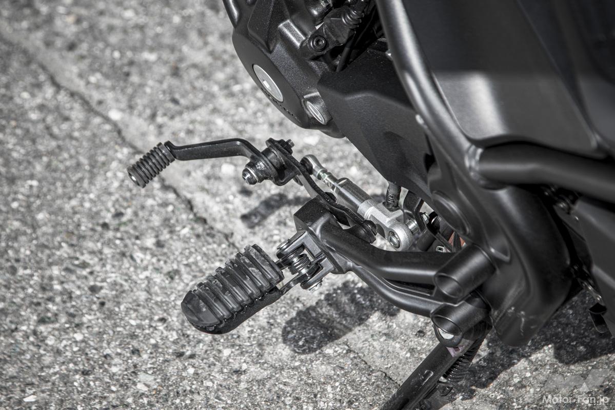 シートのスポンジは変更されたが、足つきの良さは相変わらない。クラッチカバーにE-Clutchが張り出しているが、足をついたときに多少当たることがあるという程度。実際に走っているときはまったく気にならなかった。