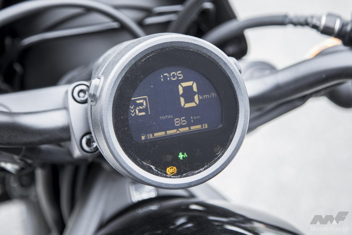 シフトダウンのブリッパーはないが、必要性はまったく感じない。試乗中、河川敷の土手に登っていく道を走った。2速で急な坂を登りながら減速し、Uターンするように鋭角ターン。深くバンクしながら1速に落として加速する。速度が出ていないから車体の姿勢を崩しやすいシチュエーションだ。こんな場所でもRebel 250 E-Clutchは、減速からシフトダウンを半クラッチでスムーズにいなしてくれる。どんな場所でも躊躇することなく変速ができるというのはとてもありがたい。