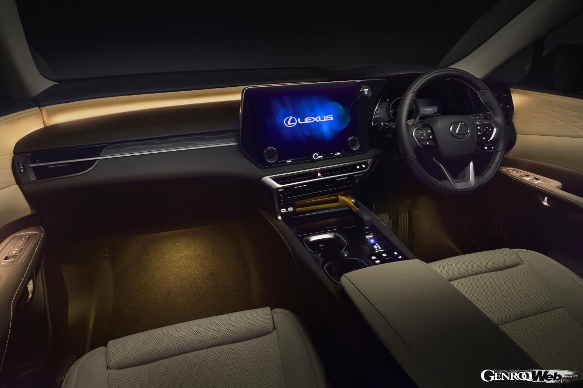 一方、改良を受けたRXはメーターが全グレード12.3インチ液晶ディスプレイに統一された。またリヤドアガラスが遮音ガラスに変わったことに加え、吸音材の追加によって車内の静粛性がさらに高められている。