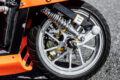 名北製というフロントカウルを装備し、アンダーカウルやブラックのタックロールシートは外装に合わせたオレンジのステッチを盛り込む。またSSR製リヤホイールのスポーク部分も外装に合わせたオレンジとなっている。