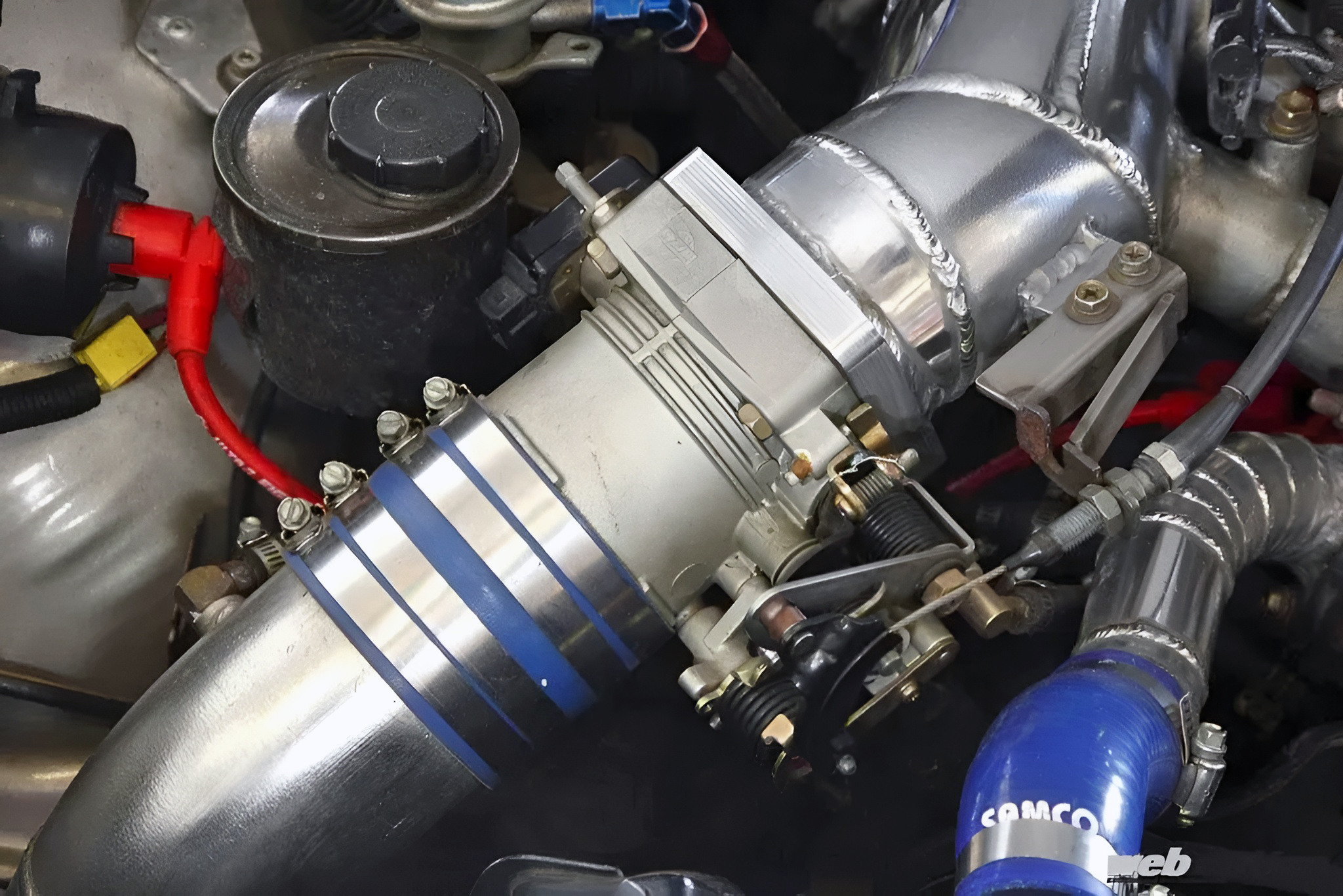燃料系はボッシュ燃料ポンプと720ccインジェクターで容量アップを図り、そこにボールベアリング式でレスポンスに優れるIHI製RHX6タービンを組み合わせ、最大ブースト圧1.5キロ時に400psを発揮する。