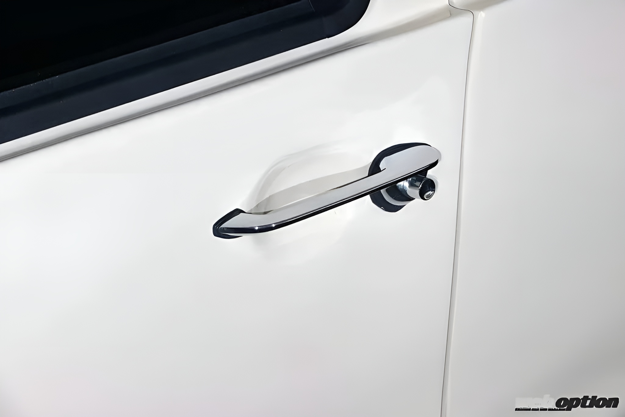 グリップ式のドアハンドルも“らしさ”を演出する重要な部分だが、もちろんそのまま装着できるわけがない。まず丸いくぼみ部分をK12マーチのドアから移植して、そこにハコスカのドアハンドルを加工移植しているのだ。