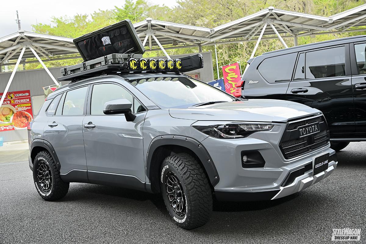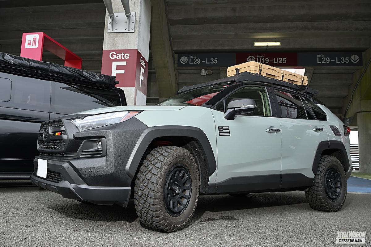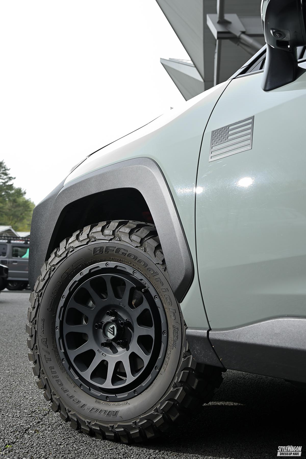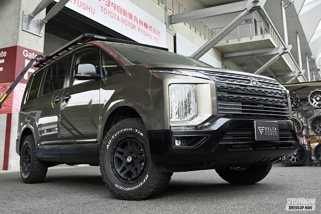 デルタフォースといえば『オーバル』と言っても良いほど大ヒットホイール。国産SUVからデリカD:5、30アルヴェルなどのミニバン、そして輸入車と対応車種も豊富。ここで注目したいのがこのハイエース。設定色の中で一番人気はマットブラックで、ミーティングに参加していたユーザーもマットブラックを履く例が多かったが、同車は敢えてブラックマシニングを選択。オーバル特有のホール形状がハッキリわかる色味は、他車との差別化を図るのにも最適。さらにオーナメント部の色も選べてアレンジ可能。さらにライノラック製品でアウトドア志向に仕上げてあった点もポイントだ。