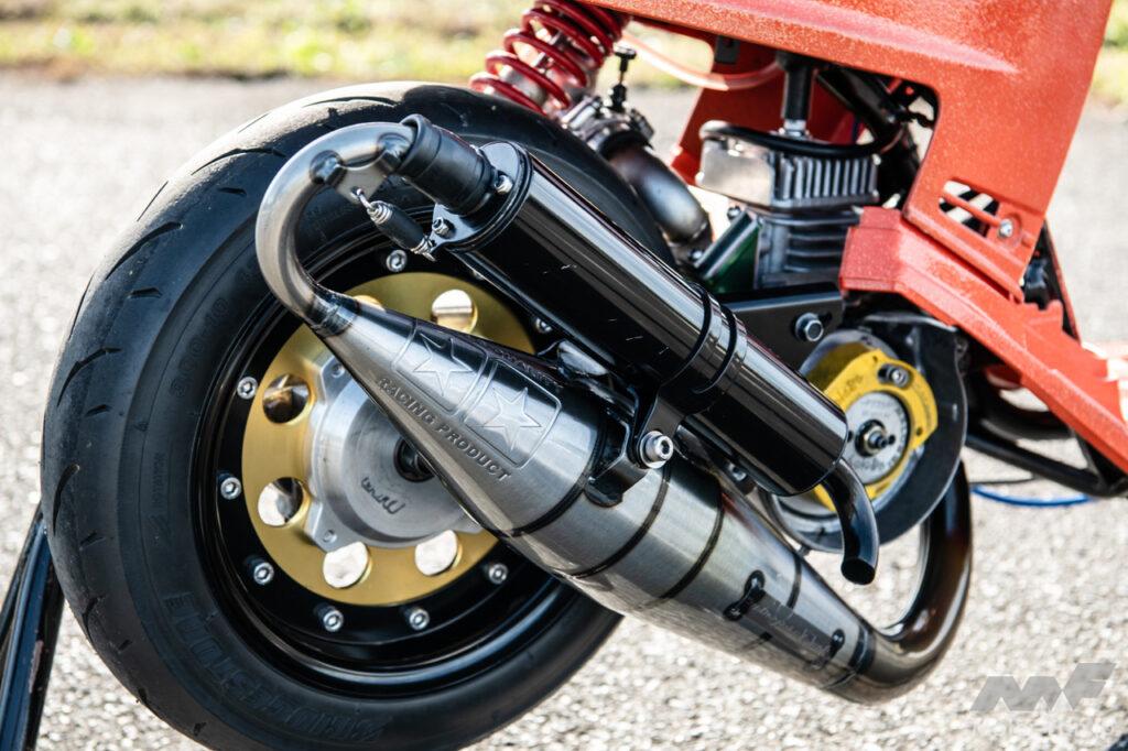 往年のパッソルIIを細部までカスタム! 欧州製パーツも数多く取り入れる! 前後の足回りやエンジンチューンも施される! 2026.04.12 10:00 この記事の画像をもっと見る(全3枚) 懐かしいパッソルIIをベースに、フロントサスペンションはリジット、リヤサスペンションはデイトナ製ショックとし、フロントにはキタコ製アルミホイール、リヤは80年代に流行ったアルミ製ハブを使用してアルミホイール化。イタリアのマロッシ製パーツやドイツのステージ6製パーツなど、欧州ブランドパーツも多用して仕上げている。【スクーターミーティング2024】 ◉OWNER:鳩小屋SA 2024さん ◉MACHINE:YAMAHA PASSOL II ◉SS1/32mile:5秒400 ◉Class:SA INDEXアルミホイールとユーロチャンバー縦型エンジンならではのインテーク系 アルミホイールとユーロチャンバー チャンバーはドイツのステージ6製を採用。アルミホイールはミニモトモンキー用を改造して取り付けたという。インナーローターはイタリアのマロッシ製。 縦型エンジンならではのインテーク系 リヤタイヤが干渉するため、スペース的な制約の多い縦型エンジン。マニホールドはMXS+スワップ工房製で、大型のリードバルブはトップパフォーマンス製。シリンダーとヘッドはステージ6製の49cc仕様となっている。 ※この記事は月刊モトチャンプ2025年3月号のものです。 バイクカスタムの関連記事