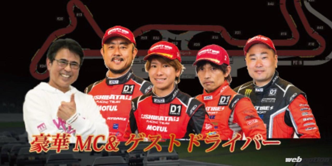 さらに、参加ドライバーも超豪華で、D1GPで活躍中の蕎麦切広大選手、日比野哲也選手、田中省己選手、斎藤太吾選手の4名を予定。イベントMCはマナピーこと鈴木学氏だ。