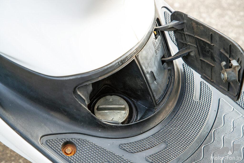 燃料タンクをフロア下に配置し(一般的にはシート下に燃料タンクとバッテリーが鎮座している)、燃料ポンプによってガソリンを圧送。重心を低くすることで安定したハンドリングを実現。