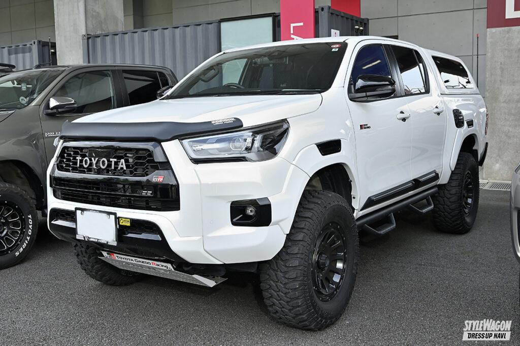 低いクルマばかりに乗ってきたというmioluxさんは「キャンプが大好き!」だったので、大きなハイラックスへの乗り換えを決意。ピックアップトラックのカタチが好きだったこともあり(オーナー曰く「バックトゥザフューチャー世代」)、この乗り換えは極めて自然な流れだった。ユニークなのは、「ピックアップトラックのカタチが好き」だったのだが、結局荷台にキャノピーをつけているトコロ。どうやら荷物を積載するときには囲いがあったほうが、効率よく積めるようだ。荷台には人工芝を敷いているのもポイント。荷物が動いてしまうことへの対策だが、ゴムマットだと臭いが気になる。人工芝で問題解決というワケだ。ホイールはピンポイントで探したワケではなく、ショップで見て気に入ったそう。運命の出会い、というワケですね!