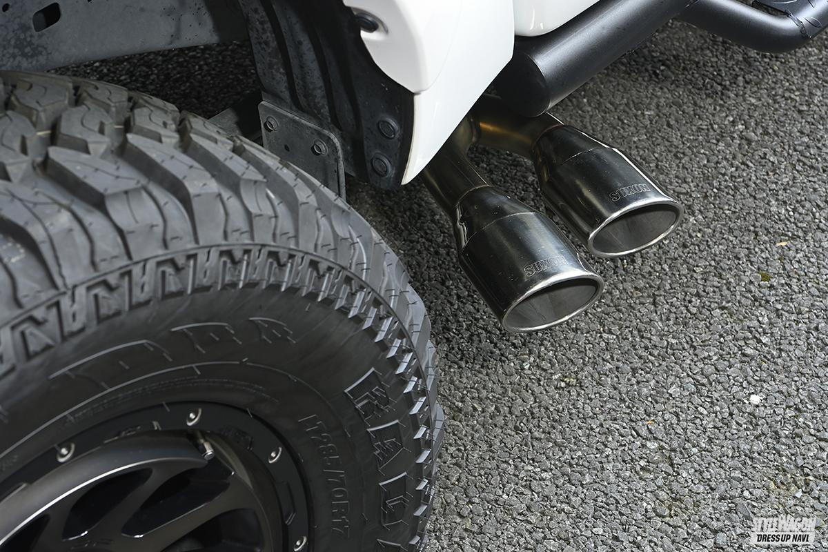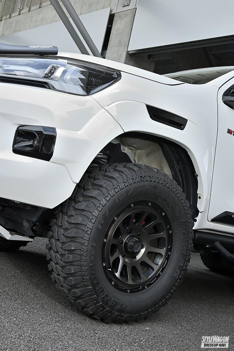 WHEEL●デルタフォース オーバル(17×8J+20) TIRE●RADAR RENEGADE R7 M/T(285/70) EXTERIOR●S=GIギア、キャノピー=TRD TUNING●スプリング=ジャオス+ボディリフト(F4.5、R3インチアップ)、マフラー=サクソンレーシング