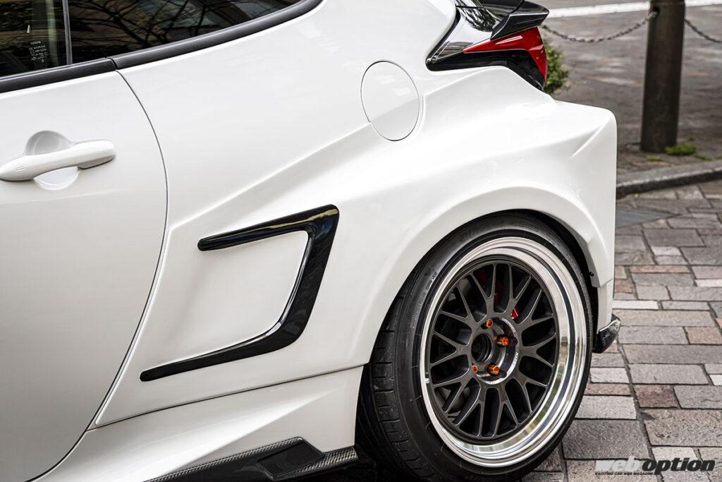 ジャンル問わず数多くのモデルを手掛ける“ガレージベリー”だが、その中でもGRヤリスはいち早くデモカーを導入してエクステリアパーツ開発をスタートさせた最重要ターゲットの1台だ。