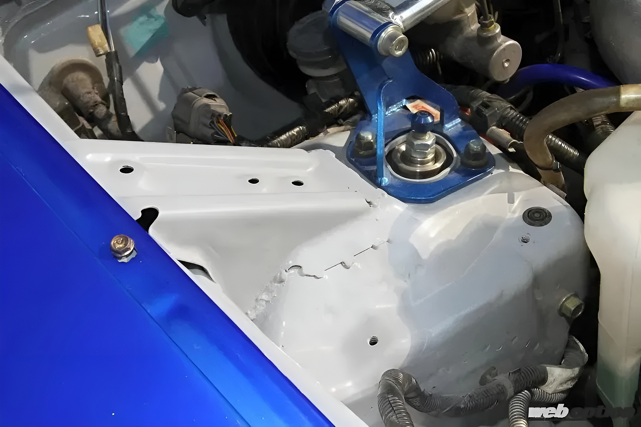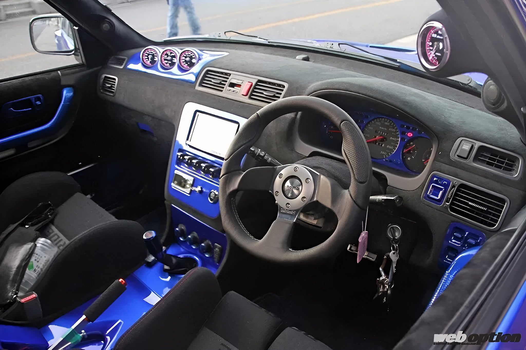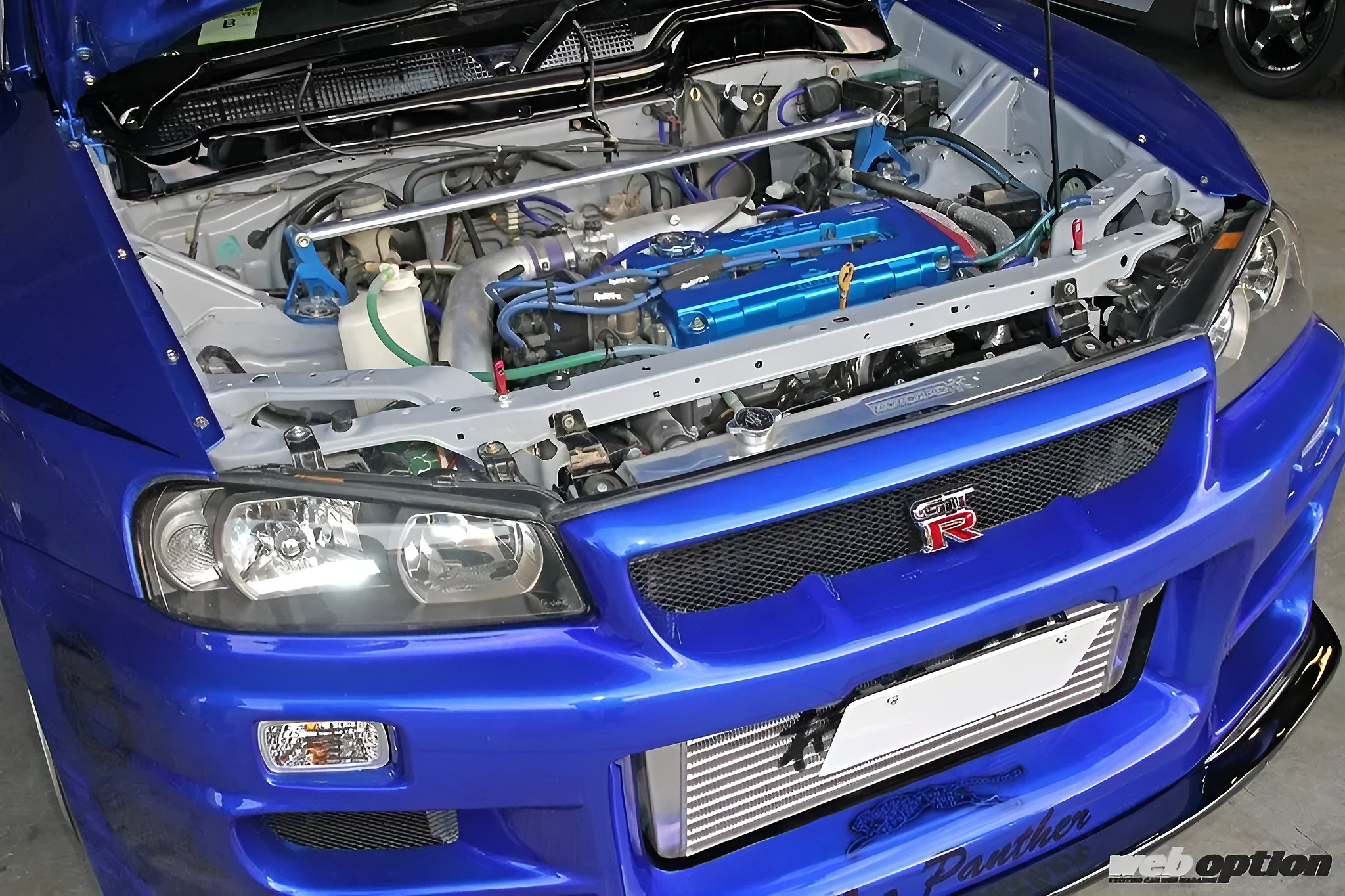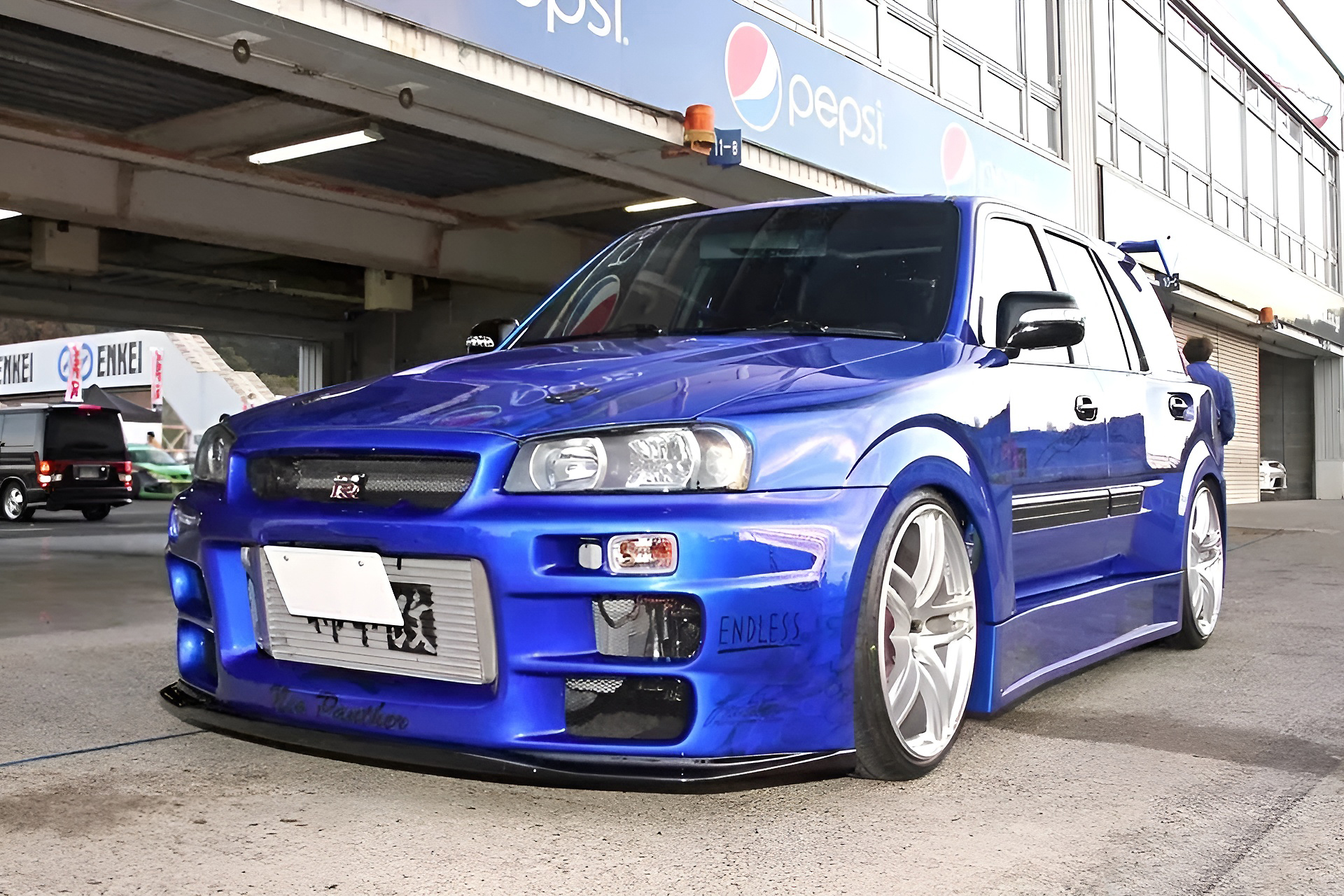 カラーリングはキャンディブルーをベースにエンドレスパンサーなどをミューラルペイント。カラーリングにあたっては、エンドレスの承諾もとった公認仕様(!?)だという。攻撃的なフロントバンパーはトップシークレット製だ。