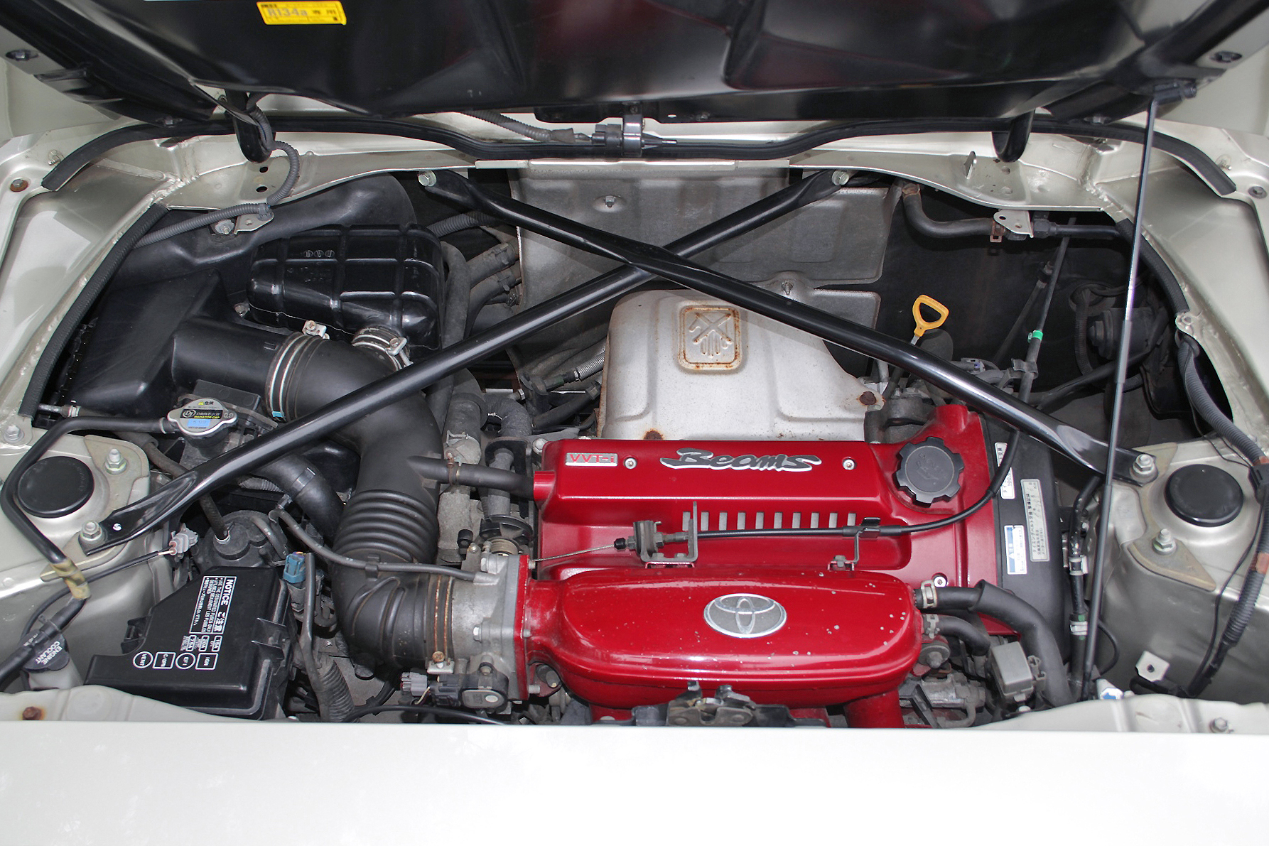 リヤミッドに搭載される3S-GE型エンジン。最終V型に載るのは吸気側カムに連続可変バルタイ機構が与えられたVVT-i仕様だ。最高出力200psを7000rpmで、最大トルク21.0kgmを6000rpmで発生する高回転型ユニットで、吸気音を“聴かせる”チューニングも施される。