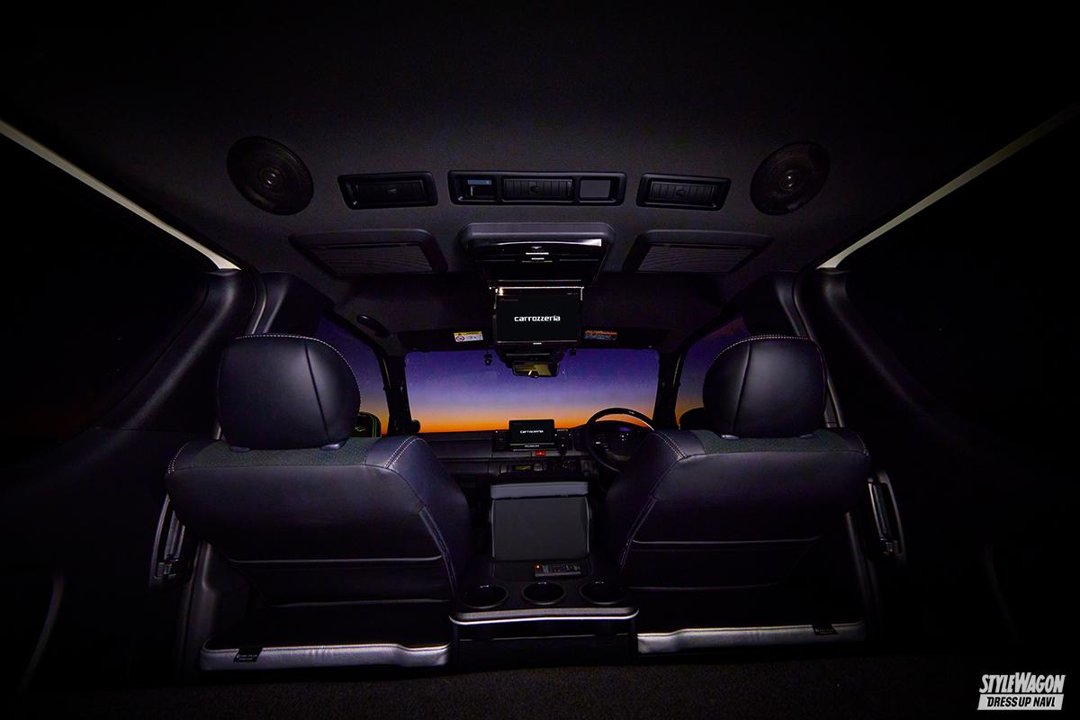 後席のエンタメには天井スピーカー&モニター!
