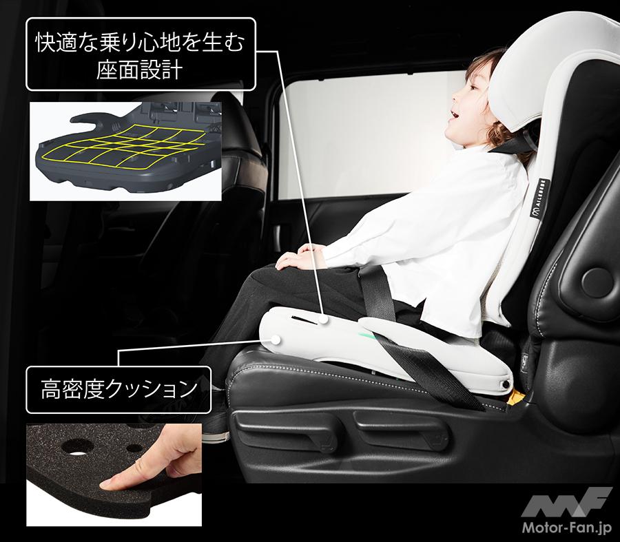 また、シートベルトのズレ上がりを抑制して正しく使用できるローポジションのベルトガイドや衝突時の頭部への衝撃を軽減するヘッドプロテクションなど安全性を高める設計も備わる。