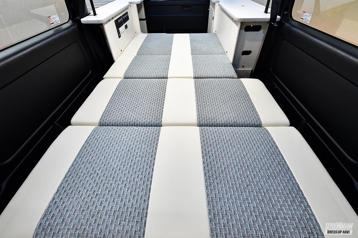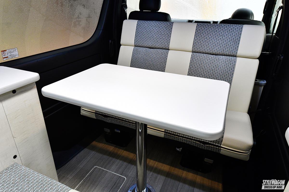 キャンピングカー専門店が製作する車両は本格的な仕様だが、ビギナーが簡単に購入できる金額ではない。そこでもう少し敷居を下げ、4ナンバーという制約の中で快適に車中泊できるクルマを製作することになったそうだ。