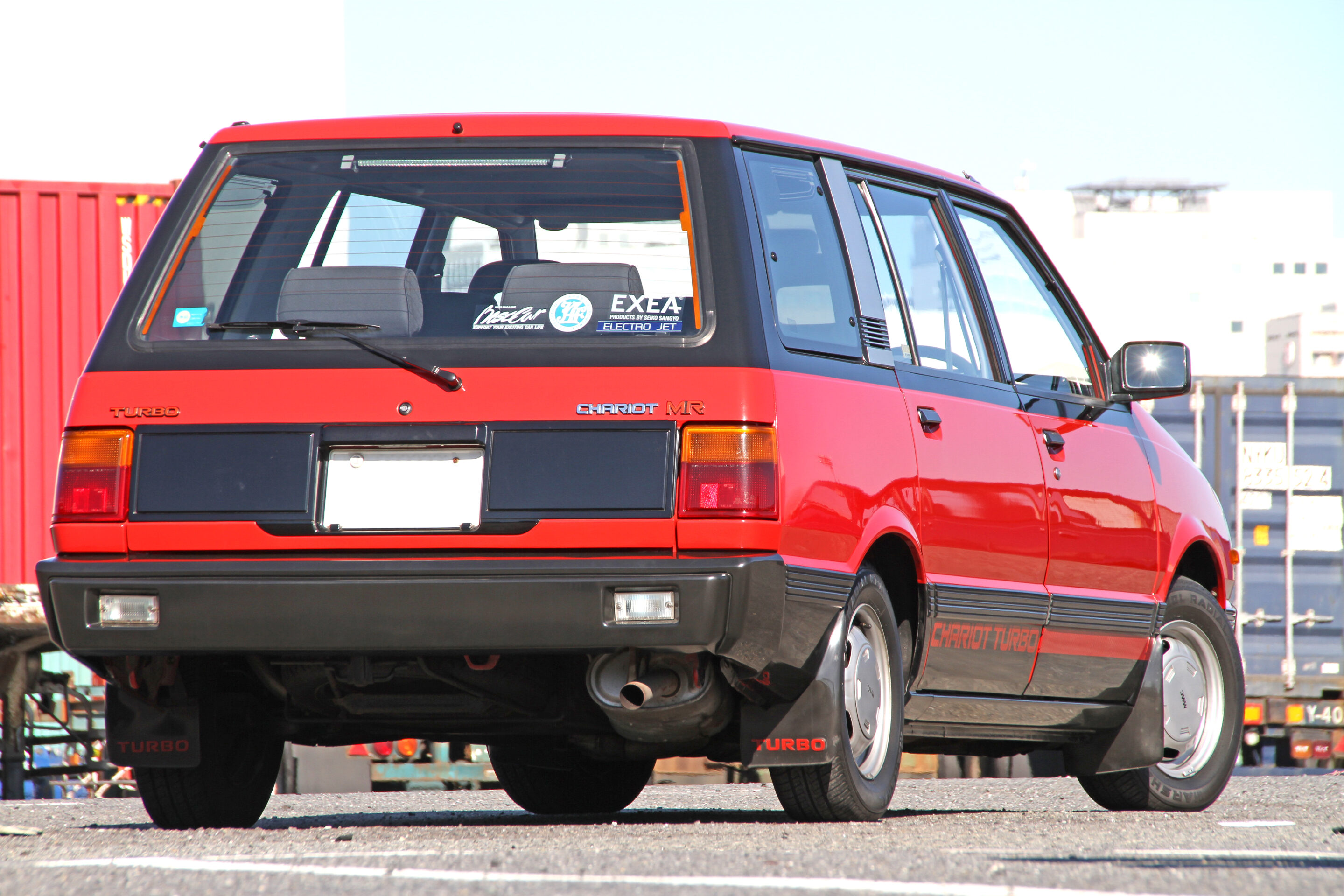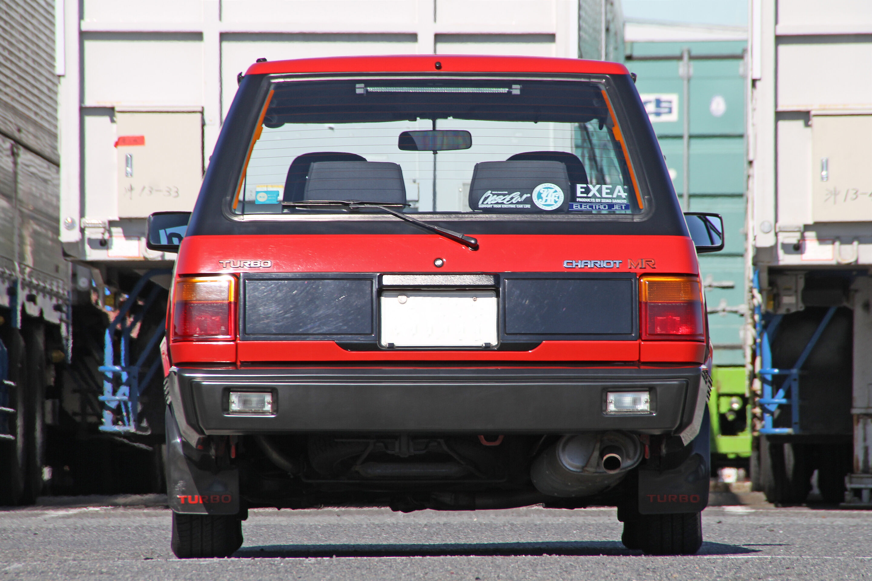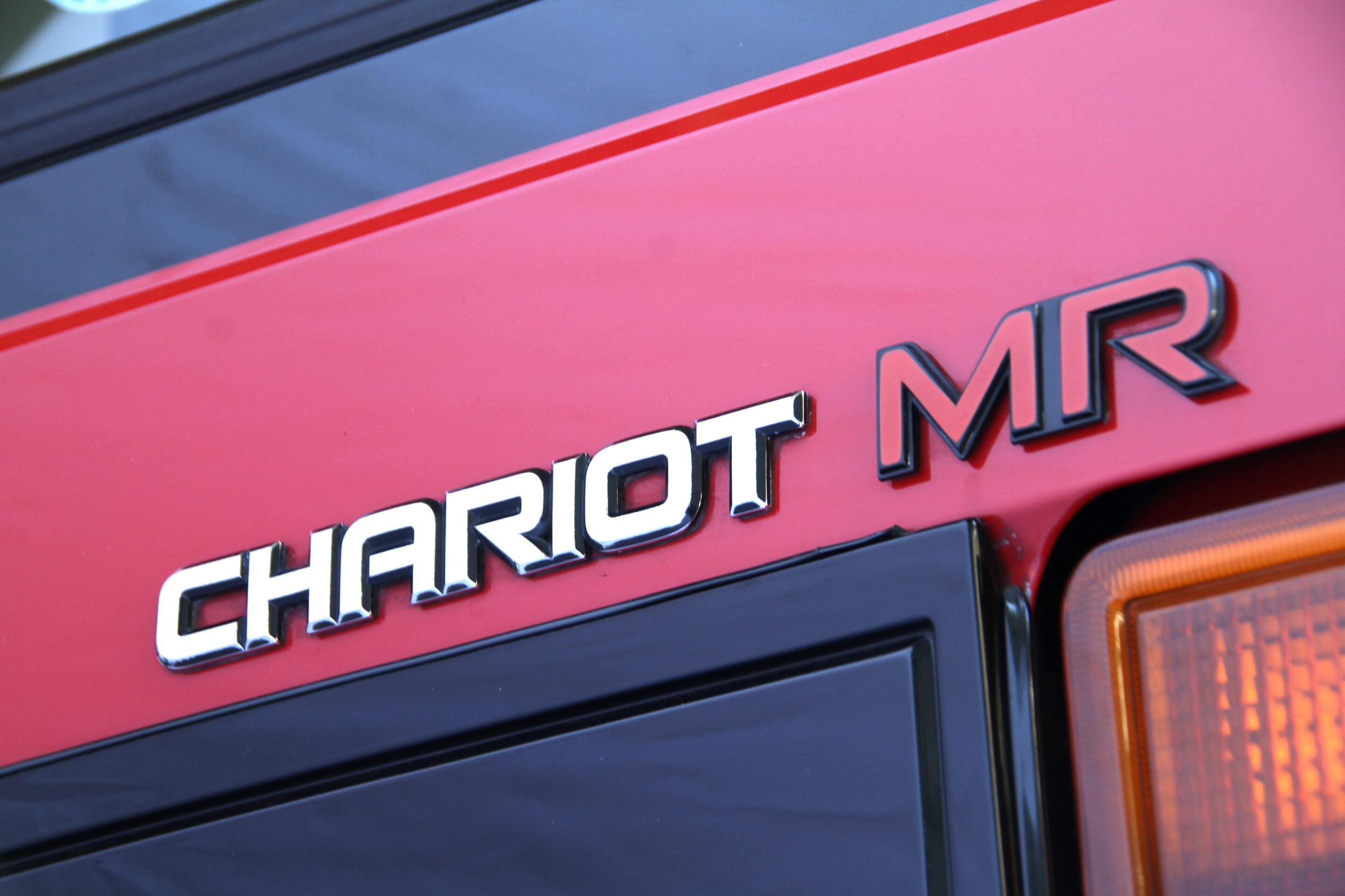 取材車両のMRターボは、イメージカラーであった赤/黒2トーンのボディ色。ボディサイドには“CHARIOT TURBO”のロゴデカールが誇らしげに入っている。