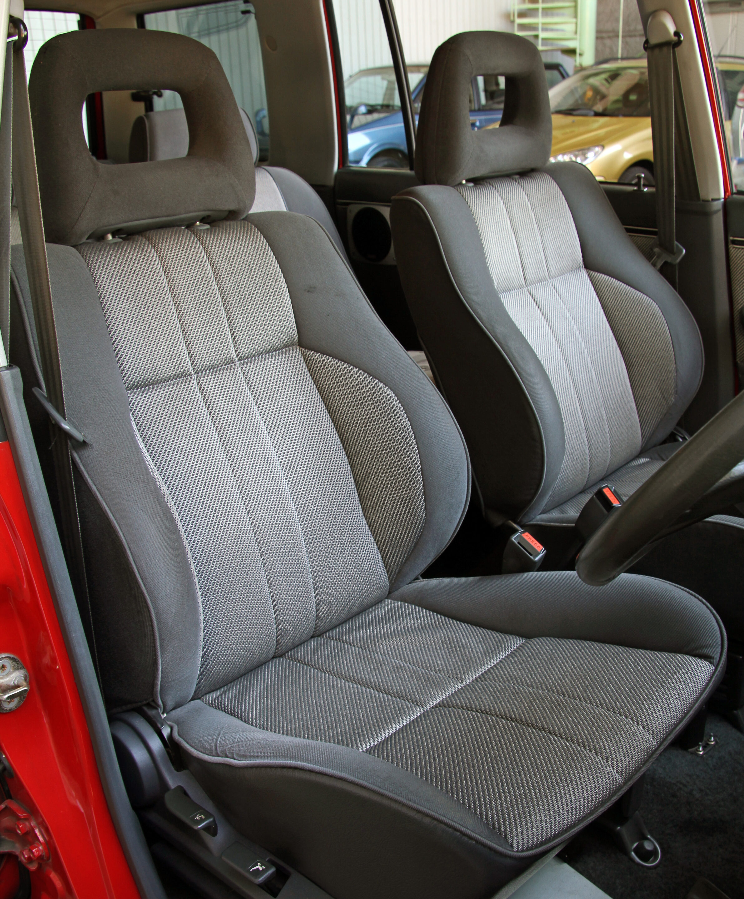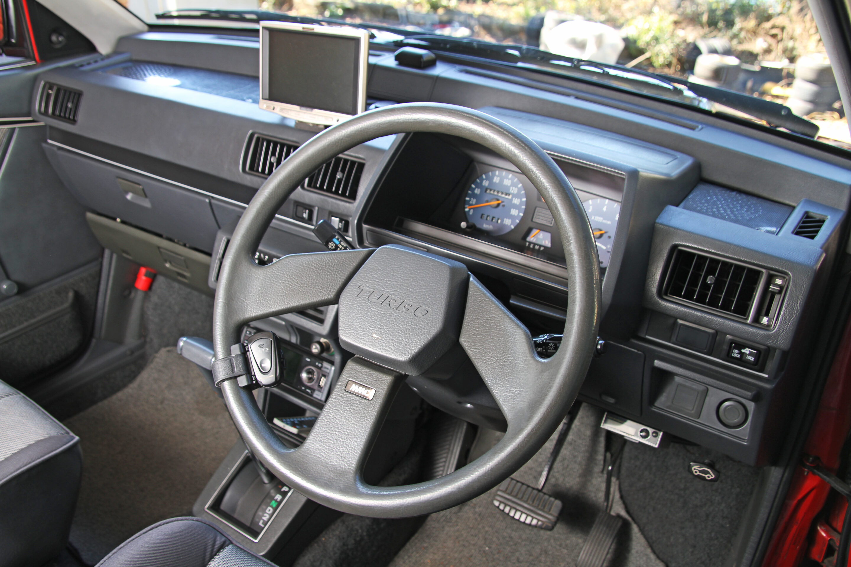 前席はサイドサポートの張り出しが大きく、スルータイプのヘッドレストも採用されるなど、見るからにスポーティ。思うに、どうやら三菱は本気でスポーティモデルに仕立て上げようとしていたらしい。しかし、このシート、当初はMRターボ専用だったのに、後1984年5月に登場した4WDも共用することになった。