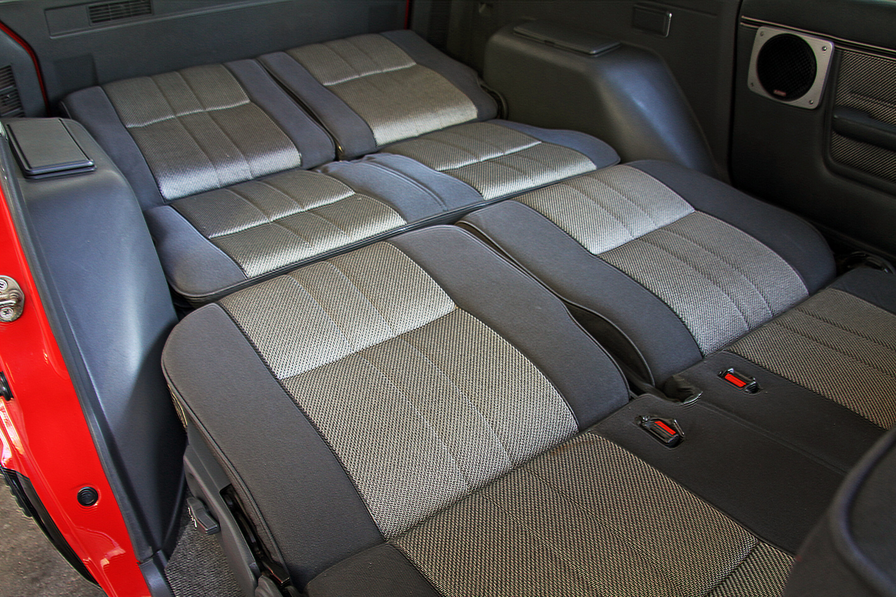 2列目を一番前に出してヘッドレストを抜き、フルリクライニングさせると2~3列目でフルフラットを実現。こんな芸当は当時、ハイエースやキャラバンといったワンボックス車の特権だったから、セダンに毛の生えたようなクルマ(失礼)でシートがフルフラットになるのは実に画期的だった。