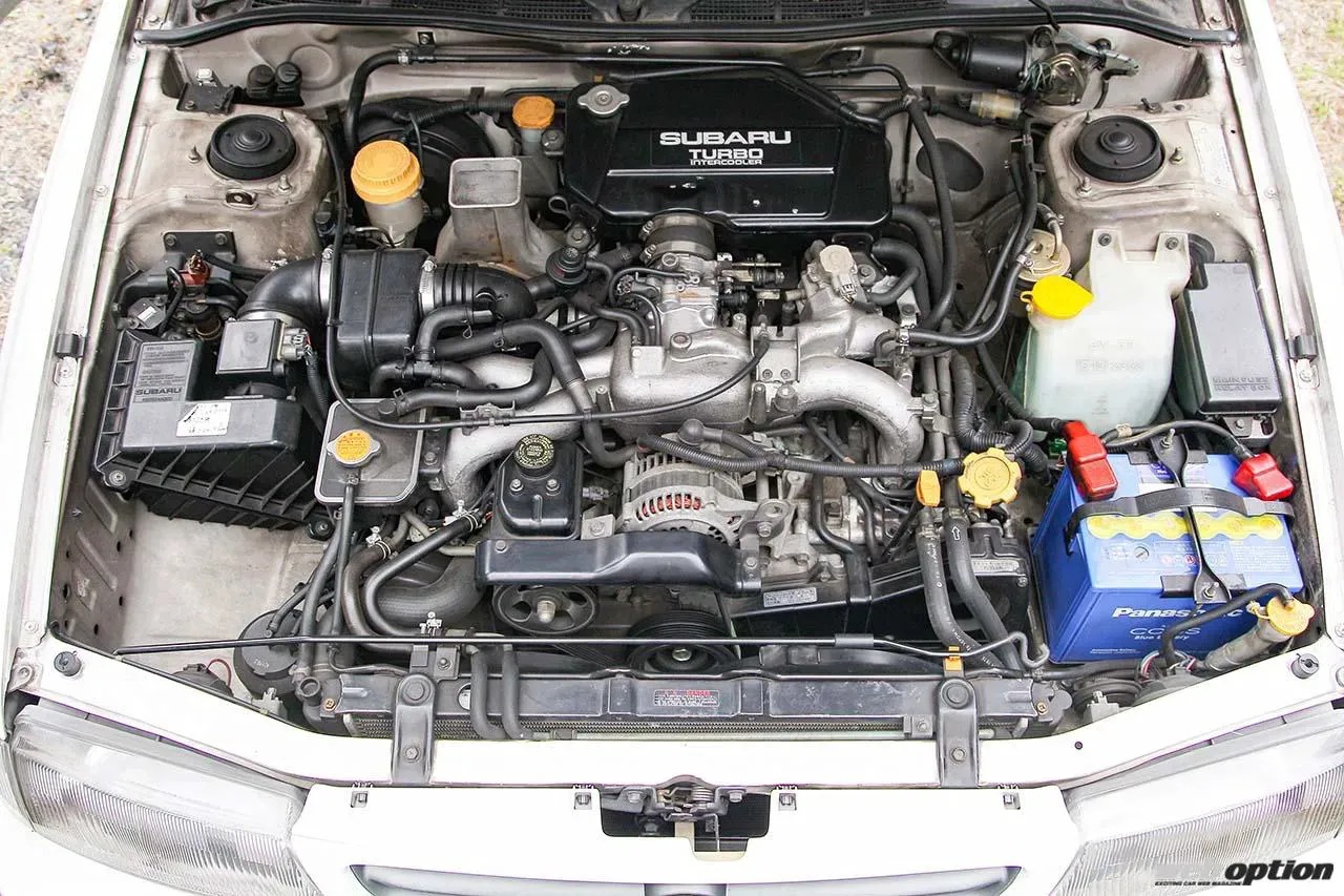 経営難に陥っていたスバルの救世主、初代レガシィの登場は1989年。新開発EJ20ターボに5速MTを組み合わせたRSがスポーティグレードとして用意された。のち、競技ベースモデルRSタイプRにSTIが更なるチューニングを施したのがA型で限定100台、B型以降は受注生産とされたRAタイプRAだ。最高出力220psはベース車と変わらないが、吸排気ポート段付き修正や各部バランス取りを実施。職人の手作業によって組み上げられたスペシャルエンジンは、ゴールドのカムカバーがその証だ。足回りやステアリングギヤボックスも専用品が与えられた。