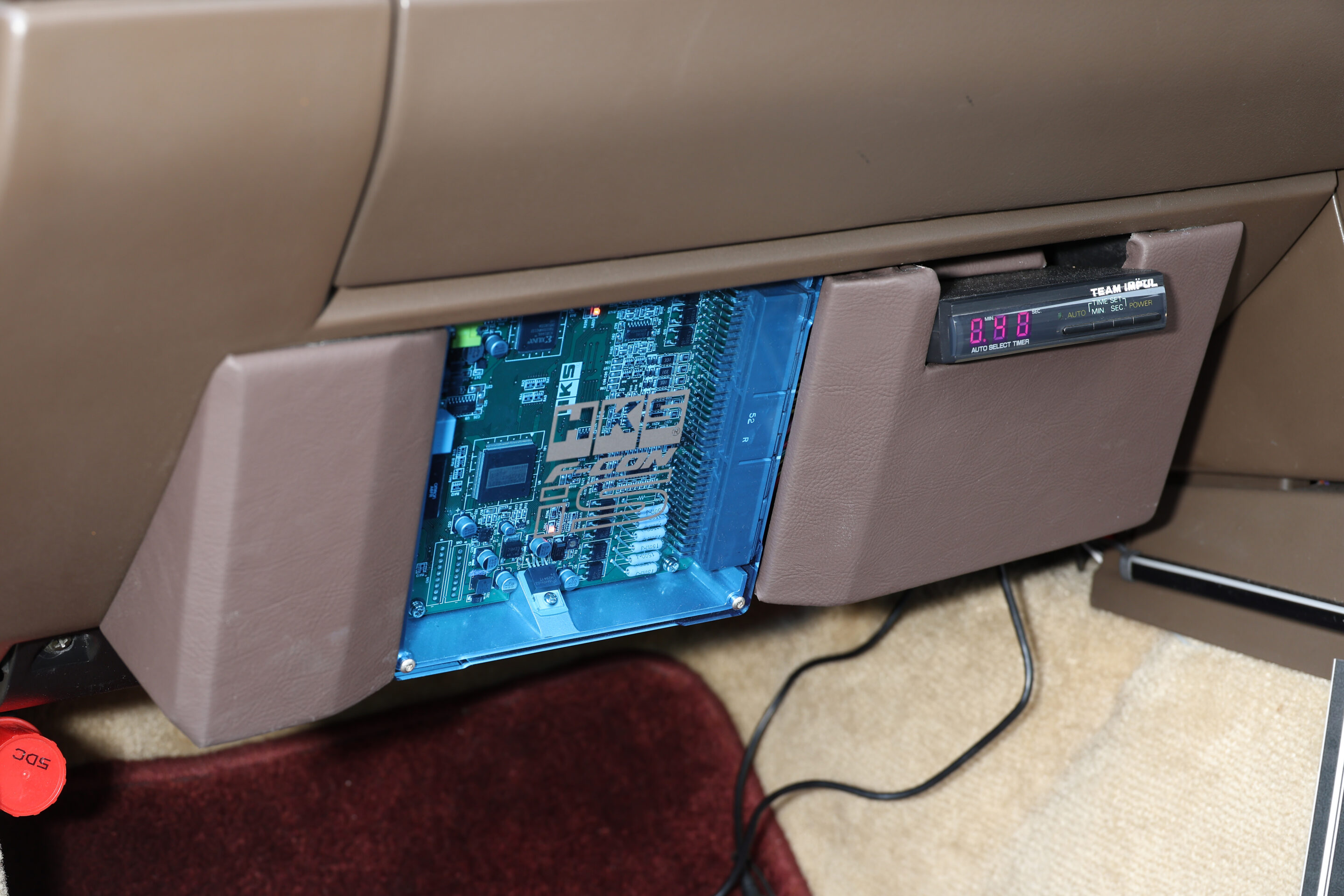 そして、エンジンルームに収まるVG30DETユニットには、ハイフロータービンやワンオフインタークーラーを装着し、HKS・F-CON iSでセットアップ。最高出力は320psまでパワーアップ。そのパワーを受け止めるために、フロント6ポット、リヤ4ポットのブレーキシステムも投入するなど抜かりなし。