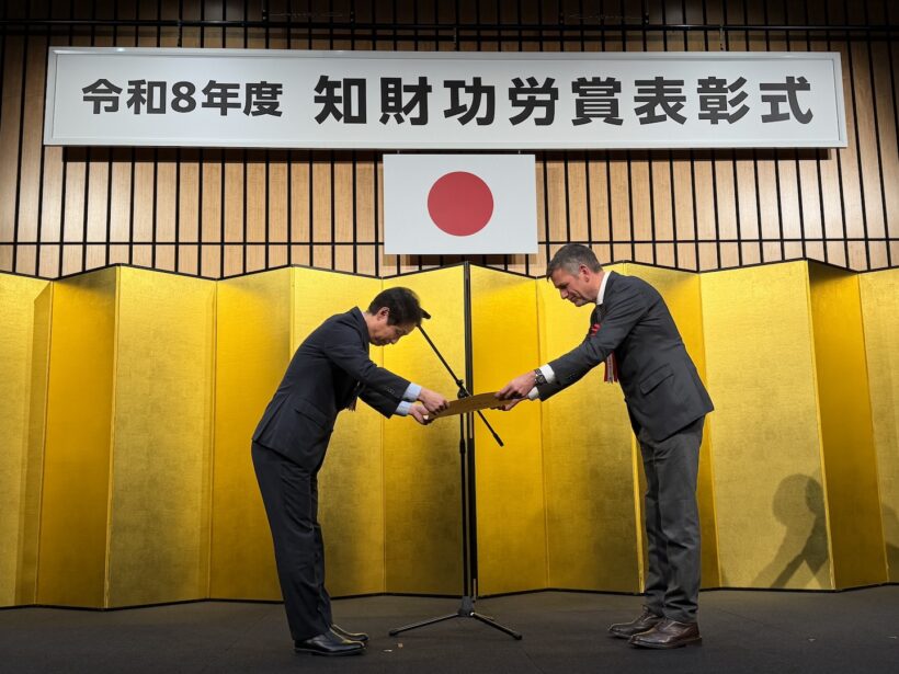 カーデザイン 令和8年度「知財功労賞」表彰式開催 トヨタが自動車OEMとして初めて意匠に関する知財功労賞を受賞【写真・2枚目】 知財功労賞を授与されたトヨタ自動車 チーフ・ブランディング・オフィサーのサイモン ハンフリーズ氏(写真向かって右)。 4月17日、東京都内の会場で「令和8年度 知財功労賞表彰式」が開催された。 令和8年度は、経済産業大臣表彰として個人2名と企業等7者、特許庁長官表彰として個人4名と企業等14者が受賞者に選ばれた。 知財活用企業(意匠)として表彰されたトヨタ自動車。サイモン ハンフリーズ氏が代表して表彰状を受け取った。 この画像の記事を読む