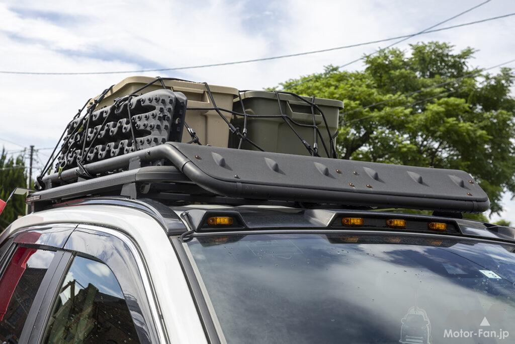 ラギッドなスタイリングではあるが、レイズ製ホイールやジオランダーのMTタイヤ、ジャオスのバンパープロテクターなど、使用するアイテムのブランドにもトコトンこだわるなど、インパクトの中にもワンランク上の高級感もゲット。カスタマイズの手数だけに捉われることなく、常に全体の仕上がりを意識した大人なバランス感覚は、ぜひカスタムの参考にしたい。