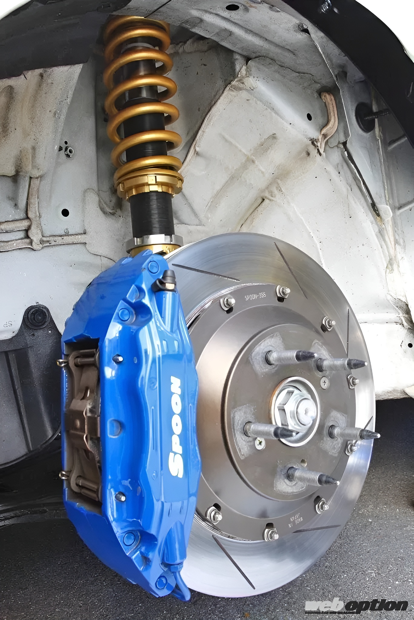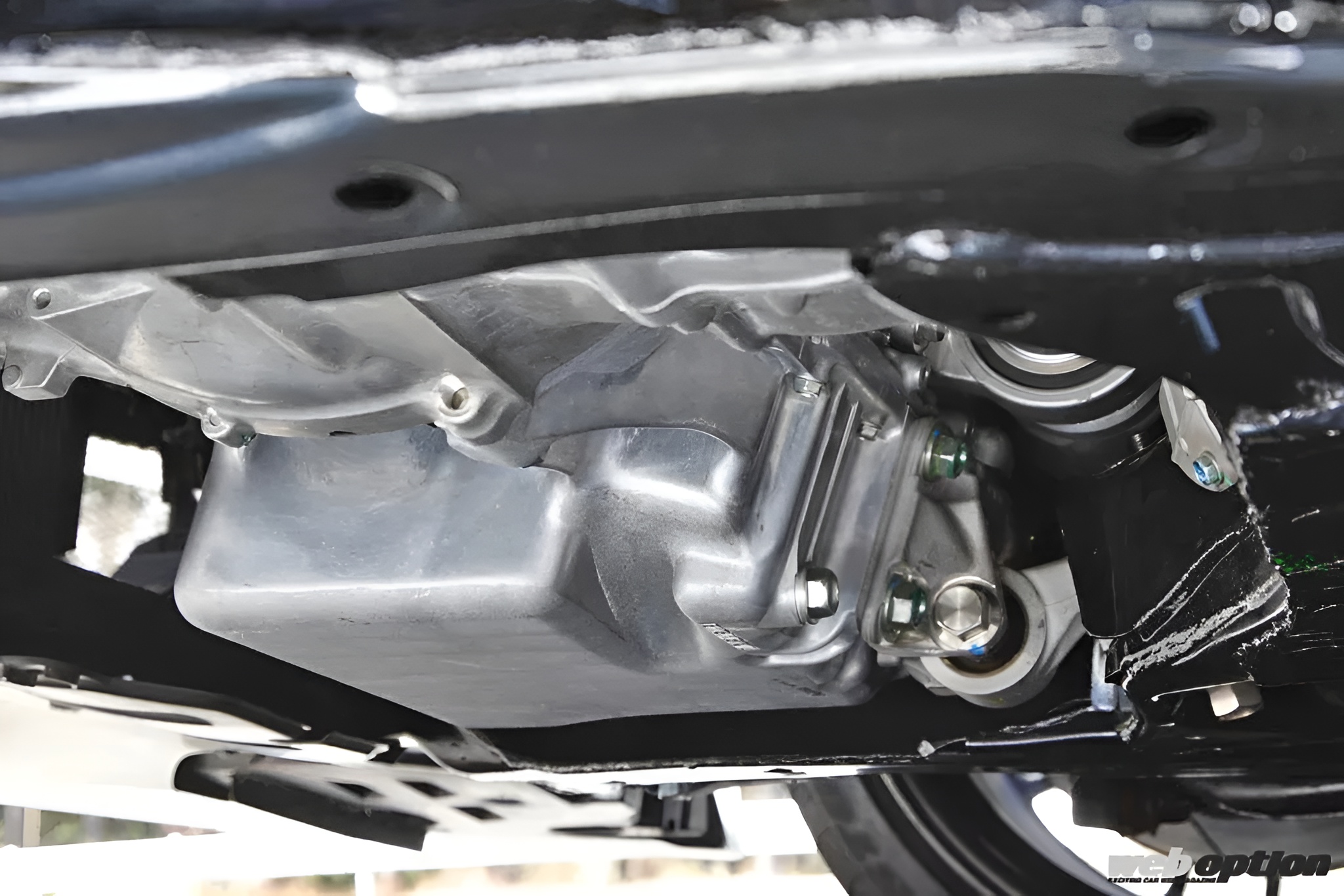 足回りは、全長調整式のダンパーキットを軸に構築。この車高調は、車高を変化させても乗り心地が悪化しないことが最大の特徴だ。スプリングのゼロタッチ領域はそのままに、車高だけを変化させる事が可能なので、ダンパー本来の「減衰特性」のセッティングができる。また、ハイレートのスプリングでも十分な性能を発揮するよう、ダンパー油性向上など様々な開発テストを経て誕生した自信作とのこと。