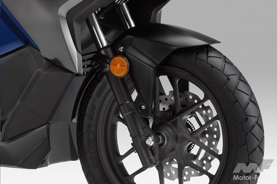 象徴的なのがフロント周りだ。大径14インチのフロントホイールに、ストローク量を確保したサスペンションを組み合わせることで、街乗りでも路面の荒れをいなす余裕がある。段差やマンホールを越えたときの安心感は、同系統のスクーターの中でも一段上だ。