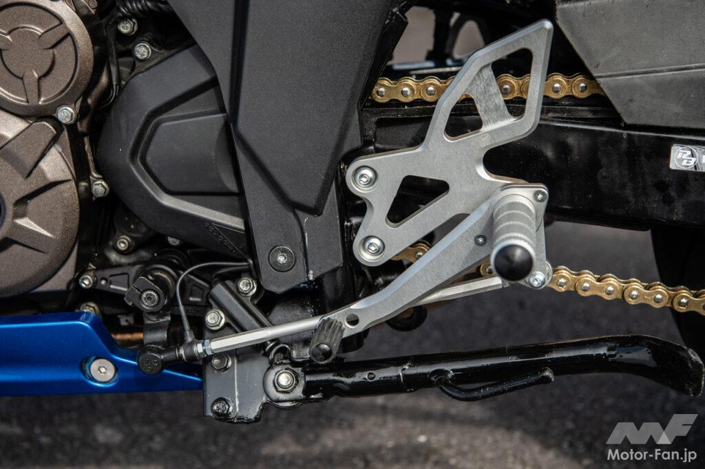シフトアップ時のわずかなパワーロスも低減させるためにHEAL TECH製のクイックシフターを導入。WR’Sダブルアールズバックステップは35mmバックで40mmアップのポジションとなる。