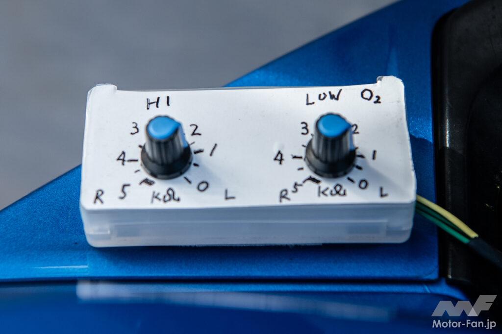 いわゆるECUキットなどを使用せず、O2センサーと吸気温度センサーに、補正用の可変抵抗を自作で追加搭載。只ならぬ専門知識を持つタイタンの凄みを感じる。