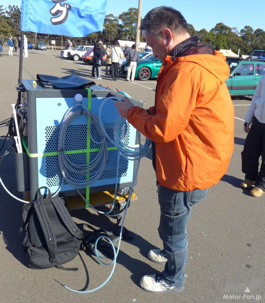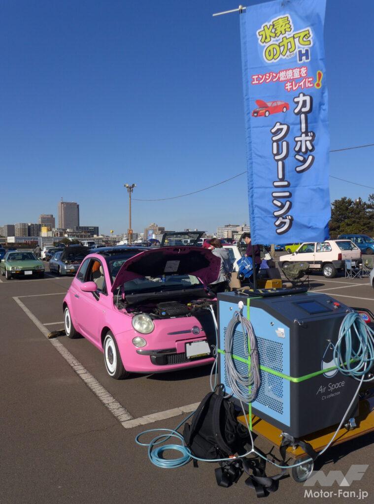 当日、企業ブースの一角で静岡県浜松市から出展していたのがエヌズコーポレーションだ。同社は浜松に本社を置く廃車買い取りや中古・リビルドパーツ販売などの会社で、それ以外にもエンジンの燃焼室に付着しているカーボンを掃除する「水素カーボンクリーニング」を実施している。今回は会場でその出張施工を行っていたのだ。
