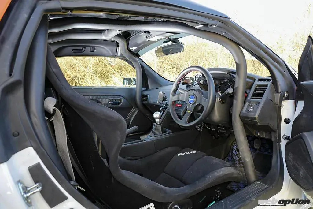 心臓部は、レーシングサクションやメタルキャタライザーで吸排気環境を整えた上、GT100Rタービンキットを装着。フラッシュエディター(フェイズ3)により現車合わせを行い、最大ブースト圧1.4キロ時に約100psを発揮する。